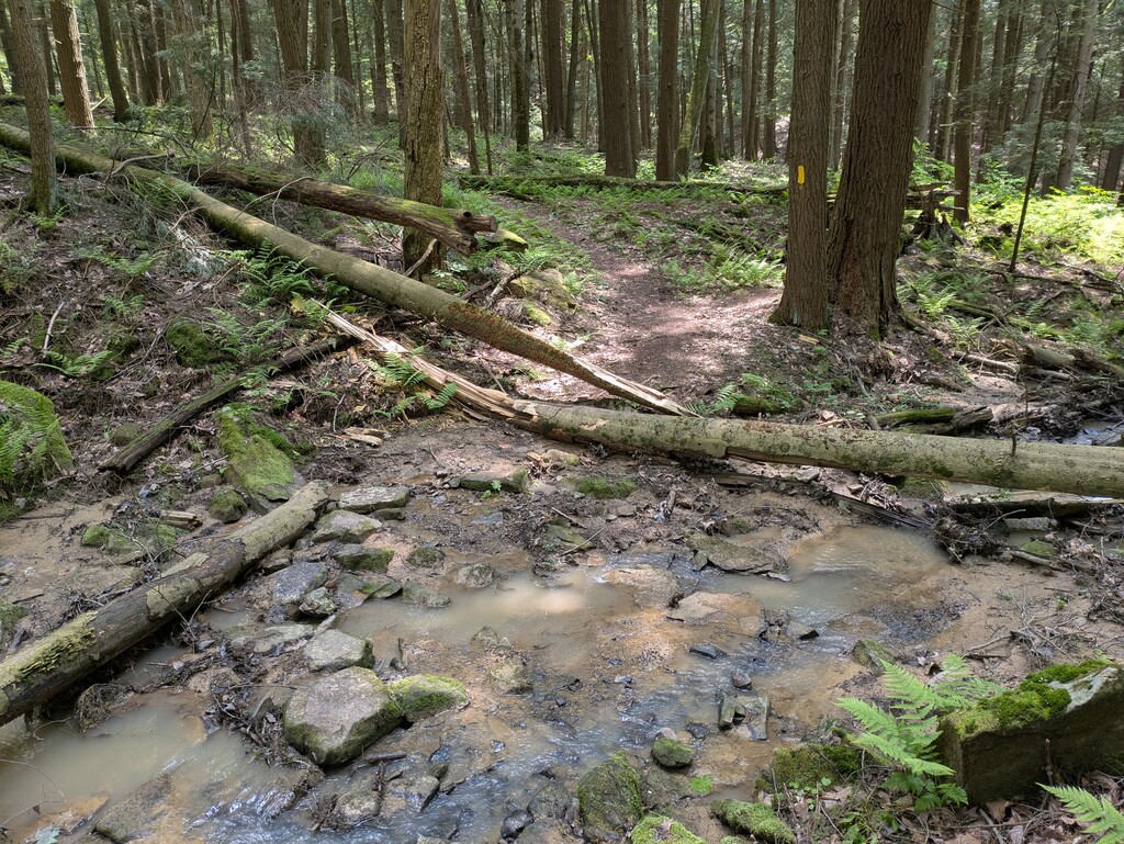 The honorable mention of this FKT attempt was the Cow Run shelter. By then, I had a bloody nose (stuffed with leaves - this always happens to me) and no water so I was crossing my fingers and toes that there would be water left for little ol' me. And there was!! And the trail goes within feet of the water station so there is absolutely no excuse to not refill no matter how tired those old bones are. It was a godsend.