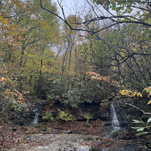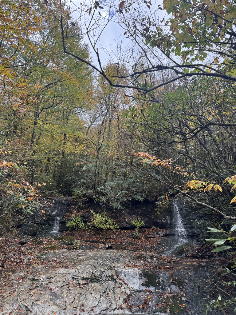 Once you hit the road, there’s a short 0.3-mile traverse that lands you at Flat Laurel Creek on the right, where you’ll head up and take in all the hidden and not-so-hidden waterfalls. Your feet will get wet here, guaranteed.