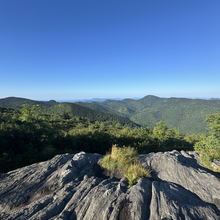 Following the MST, your next stop is Pisgah Inn. Then the local fun really begins with Pilot Rock. Head all the way to the end where it hits Yellow Gap Road. Tap both feet on the road, then climb back out. Shortly after returning to the top, head to the Mount Pisgah parking lot, where you’ll head up Mount Pisgah to stand on the iconic viewing deck before coming back down.