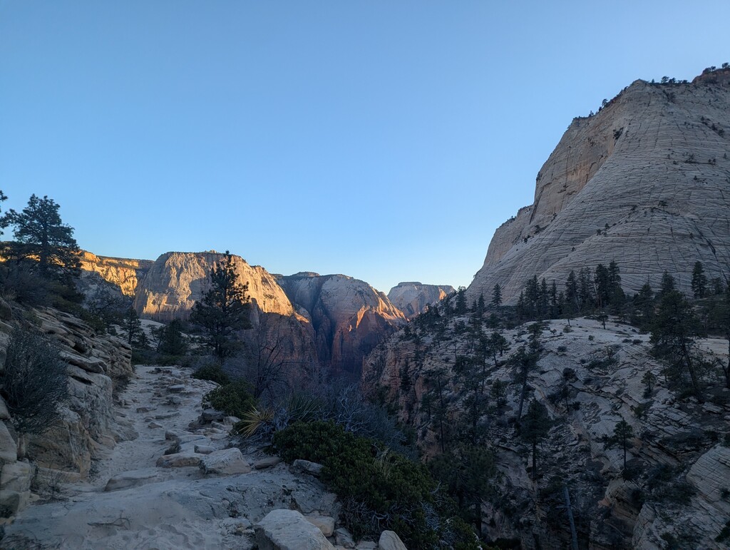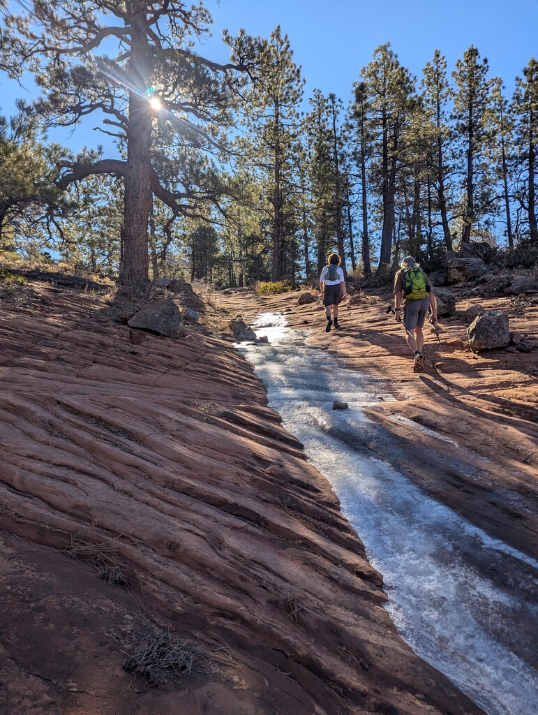 Started just before 06:00 with Matthew and Andy in below freezing temps. The cold temperature worked with us as the sand has often frozen and easier to run on than it would have been. We stopped for a herd of elk to pass around 10:30. We met up with Cynthia for a resupply and to shed some of our warm layers were our route intersected Wildcat Canyon Trail. Shortly after that I decided to split from Matthew and Andy and go at my own pace. The rest of the day continued to offer beautiful views. I did one small back track where I got turned around at an overlook and another small detour where I took a wrong turn before backtracking.