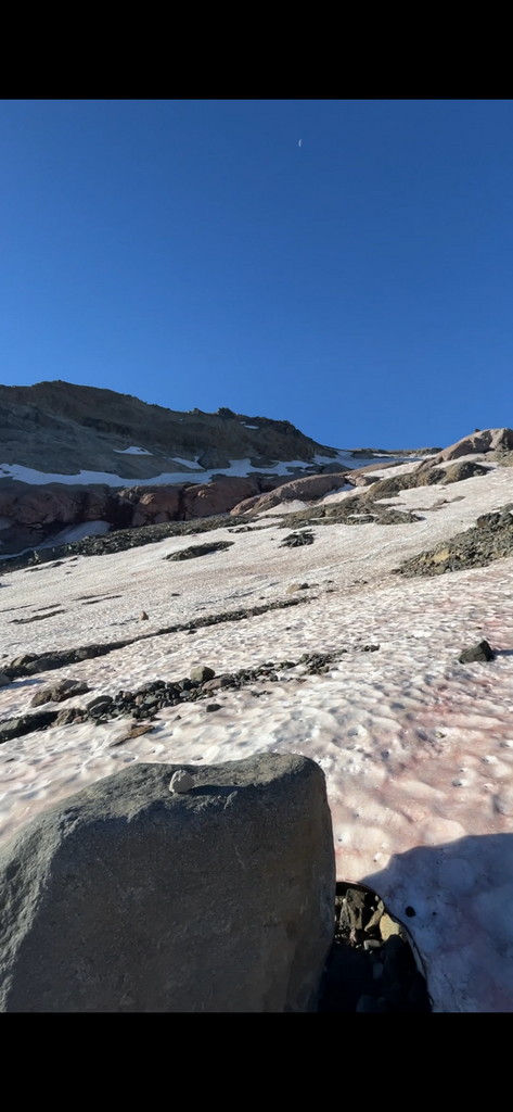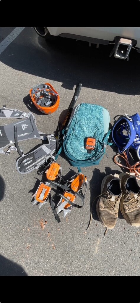 Started the Solo Climb to Camp Schurman at 5:17 am. It took couple of miles to get into the groove but once I got in the open area close to the Interglacier I started to feel good. Once on the Interglacier I put my Glacier gear on and continue on to the Camp Curtis Area which is below the Moraine crossing. Met a nice fellow and exchanged few words with him then continue on. Once I got to top of Moraine I took my crampons off and went for the decent down the most difficult section of the route to Emmons Glacier. It's very loose rock and pretty steep about 24% to 30%. It's a short section but little nerve wracking. Once I got to the Emmons Glacier I put my crampons back on and crossed the Emmons Glacier to the Camp Schurman Ranger Station. Few large open crevasses on Emmons Glacier but boot pack next to them looked and felt very safe. Chatted with the Climbing Park Rangers for a bit and then headed back down. Going same way down was pretty fast but there was little bottleneck with couple of climbers ahead of me going up the Moraine so had to wait for about 8 min but going up the Moraine was way easier then down. Once at safe spot I passed the climbers and then it was smooth sailing from there going down. I had my own water (hydration pack) about 2 liters, 2 packets of gummy bars, and 2 apple sauces. Did not had to get water anywhere or resupply anything. I was self sufficient for the duration of the climb. Overall very fun climb up and down with great conditions and various terrain. Finished at 9:59 am. My gear used was: Trail Running Shoes, Running Shorts, Shirt, Hat, Climbing Harness, Helmet, Crampons, Ice Axe, Glacier Glasses, Small Daylite Back Pack and over the back pack I had my Hydration Vest. My extra gear in case of an emergency or change of weather were Long hiking pants, Long Sleeve base Layer, Windproof Light Jacket, Light Winter Gloves, Light Winter Hat. Also Had mini emergency Kit with Emergency Blanket.