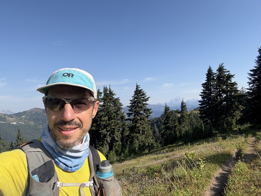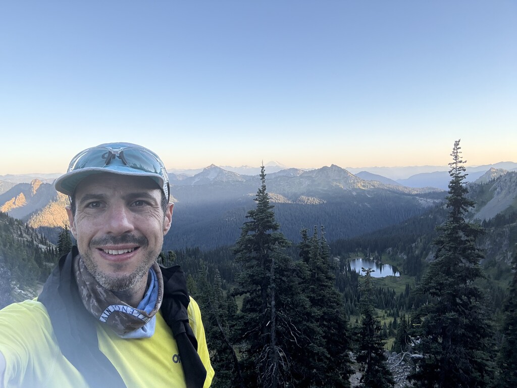 I experienced my first tumble, with a literal face plant while descendiong to White Pass; the heavy weight of my fastpack sitting high on my shoulders unbalanced me so that I did not catch myself before my face hit the ground. However, I only suffered minor scrapes on my arms and legs and nothing but dust in my face. I crossed both White Pass and Chinook Pass, and enjoyed some time on trails I knew well from a couple of different trips last year. I climbed to the ridge above Crystal Mountain (with some great views of the lit-up ski village) and camped high on the ridge.