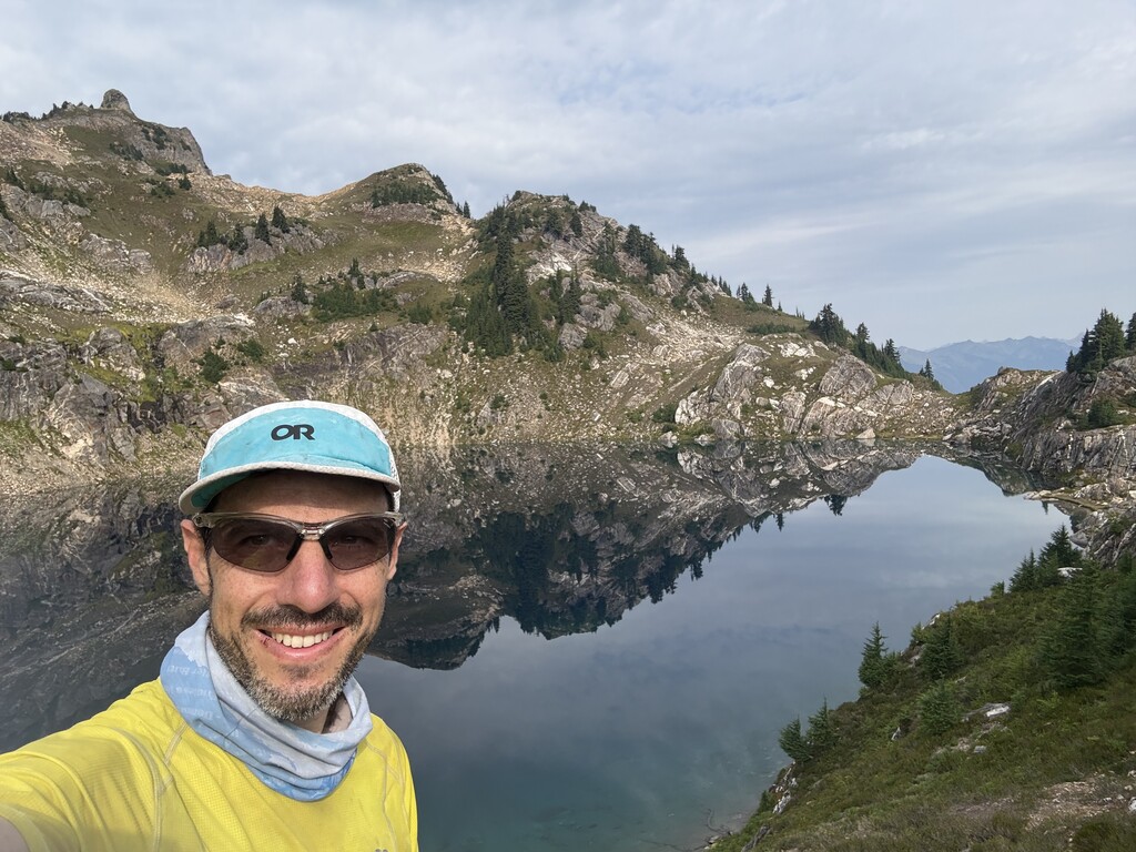 The morning started with a fantastic long ridge traverse before the day heated up. I luckily dropped into forested areas as the temperatures sweltered. It was interesting to run northbound on Section I for the first time since I ran the Cascade Crest 100-mile trail race back in 2016. I patched some heat rashes forming on the top of my feet and realized that if anything was to stop my attempt, it was most likely to be my feet. The weight of the pack on my shoulders was still noticeable but had faded from being the toughest challenge. I continued for my latest day so far, ended my day around 11pm with a nice tent site at Mirror Lake.