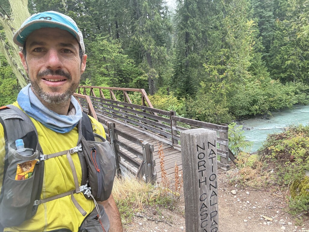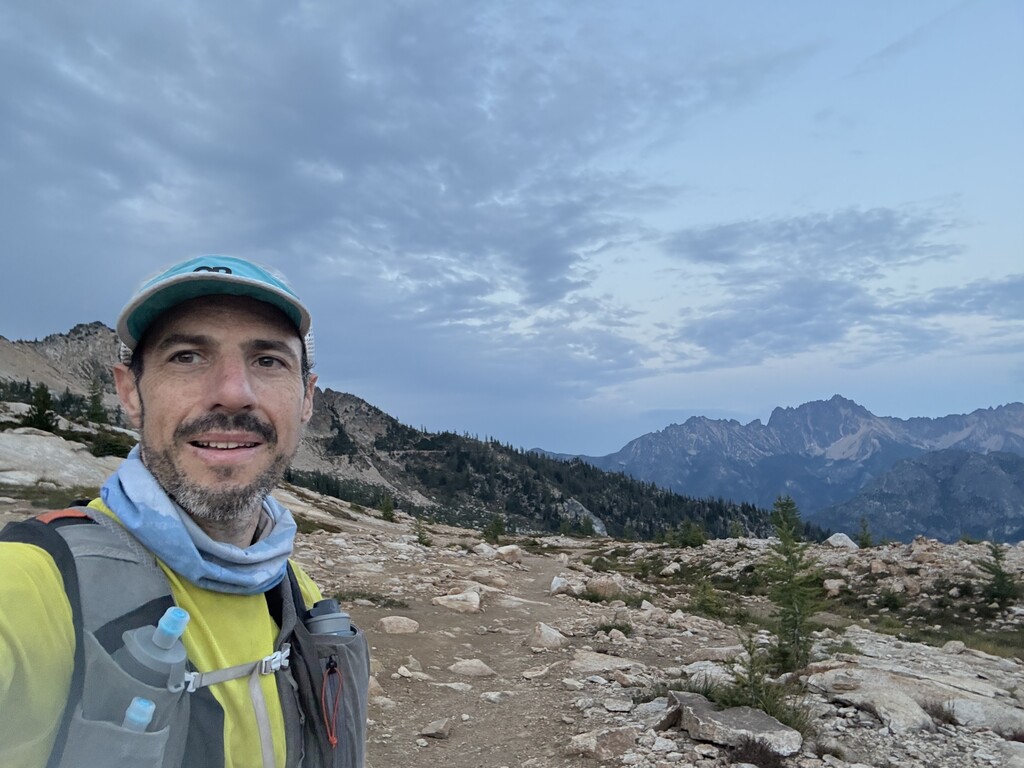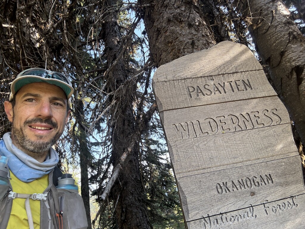 I had decided to make a continuous push through to the border, with less than 100 miles remaining. I set out wearing my rain jacket, the first time for the journey. During the day, blisters on my right foot started bothering me, so I used my wool beanie as layer of padding inside my socks; I started to envision survivor stories, where people end up with rags tied to their feet. After dark, I reached the top of Methow Pass and decided to stop to tend to my feet, popping a new blister that had formed. I finished, got up and started running down the trail. It was 0.9 miles later that I looked at my watch to realize I was heading back downhill the way I had come. I retraced my steps to the pass, surprisingly able to laugh at myself for the extra 1.8 miles I added to my journey. I had a 20-minute power nap around 2am, but realized that would not be enough sleep to see my through to the finish. At around 4am, I stopped at the edge of a campsite with a couple of tents, pulled out my quilt and lay down on some low brush to sleep for a 45-minute nap. I calculated that I should be able to finish in under 10.5 days if I maintained an elapsed speed over 3 miles per hour for the final 36-37 miles, and set that as a goal.