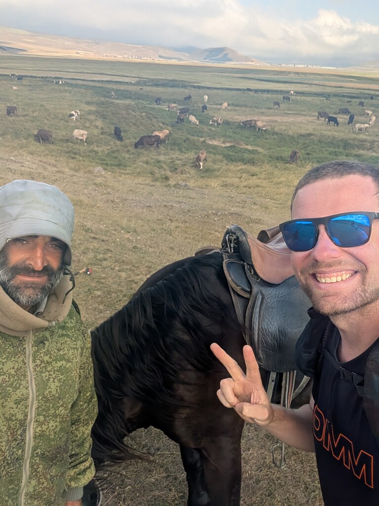 Day 1 was pretty cruisey. I met a herder and we sat and ate together. We spoke freely with neither understanding the other. He was very proud of his horse and I had a quick ride under his insistence and was glad not to have fallen off given that I've never ridden before. I camped by a quiet stream. Day 2 started without a hitch until I wandered into a herder camp around 10am and spent most of the morning drinking vodka accompanied with lamb, cheese and pickles. I took selfies with the children for them to show their friends at school and staggered on my way. I arrived in Stepanavan early on day 3, resupplied with my staples of the trip, salami and noodles, then off I went.