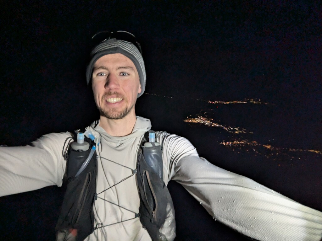 I felt pretty good physically throughout the entire attempt. I was able to eat and drink a lot of calories in the first half, although this did become a big struggle on the later night section, as expected. My legs felt surprisingly great the whole time, with a bit of normal fatigue but no significant pain. My biggest difficulty was with the altitude: even being fairly well-acclimated, breathing hard above 13,000ft for 20 hours straight is always going to be brutal on the lungs. By the halfway point, I was already starting to slow down on the uphill sections due to difficulty breathing, and this turned into quite the sufferfest on the last handful of nighttime peaks.