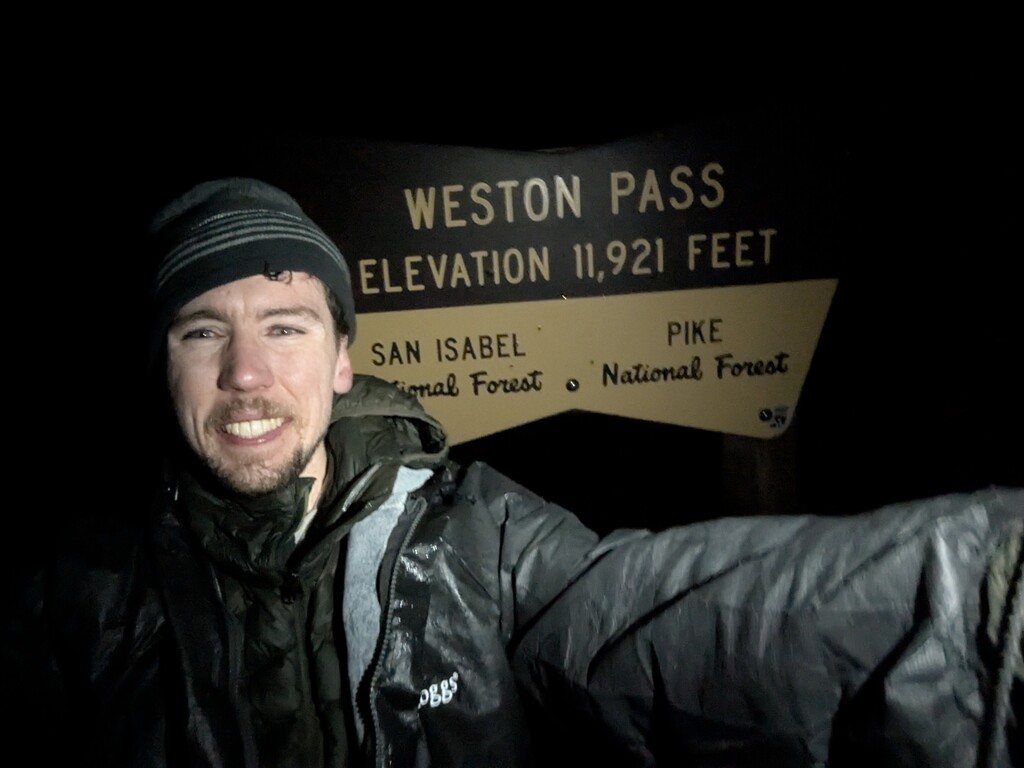 I started at the paved bike path in Frisco at 3:15:18 AM on Saturday, making it about halfway through the Tenmile Traverse by sunrise. I did a quick out-and-back to Pacific Tarn to refill water in the morning, then met a friend on the ridgeline between Tweto and Mosquito around sunset to resupply on food and water. I also switched to a different GPS watch at this point (the Strava activity is a combination of those two tracks). I continued through easier terrain in the dark and made it to the Weston Pass sign at 4:07:22 AM Sunday morning.