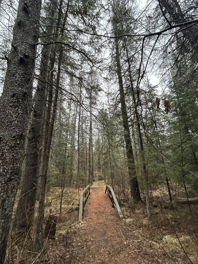 Ran it as an out and back, started at the northern trailhead off M-72. Weather was cool to start and escalated to an ice storm mid-way (see regional news for more information). Can't wait to try it again when trees aren't falling on my head.