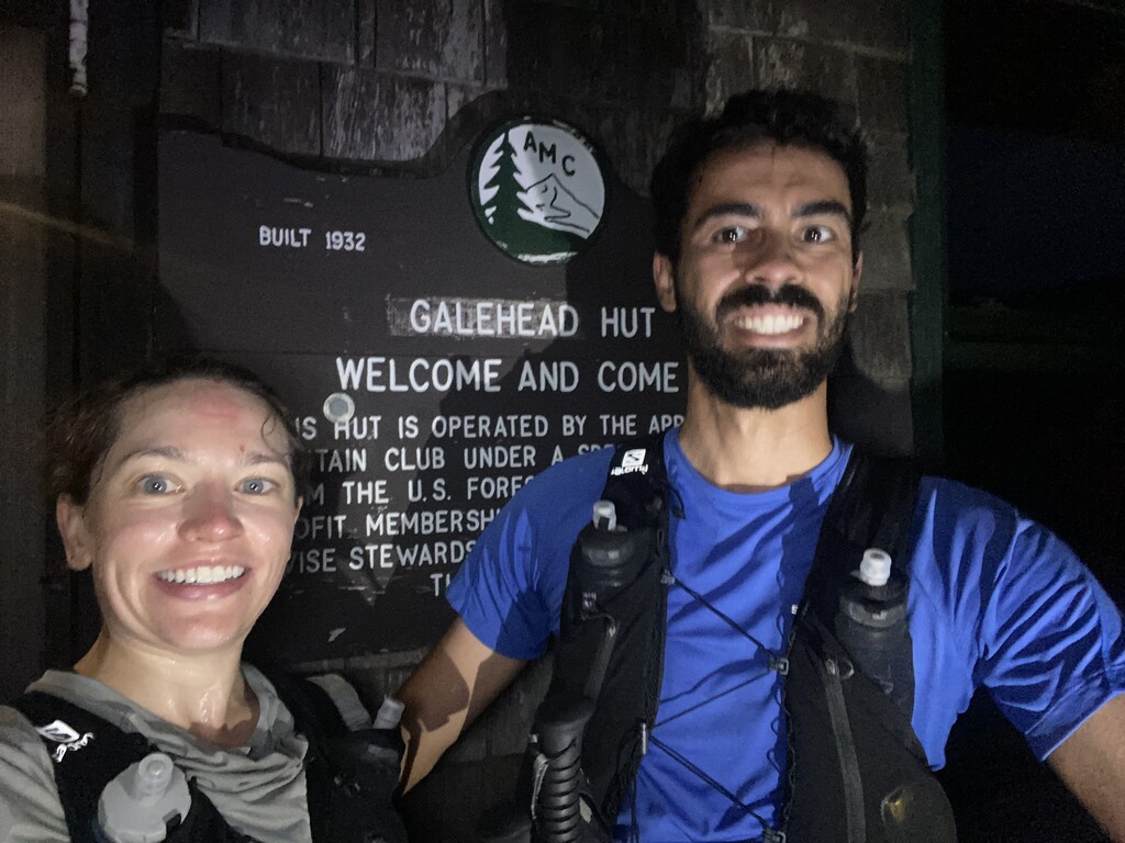 Galehead Hut (20:51): Seeing the familiar structure of Galehead as we turned left onto Frost brought a sigh of relief. We’d made it, ten or so minutes before quiet hours! I’d been here at around this time three years ago, except this time I’d hiked all the way from Carter rather than from a trail head a few miles away. Good thing Rami is a much better crew than I am, bringing with him changes of clothes for each of us, the aforementioned dinner meal, and a bag full of pre-packed snacks! We don’t stay for long, but do take the time to snap a picture together by the sign. With a new set of milestones to aim for between here and Greenleaf, we stride off into the dark. I know there’s false summits even in between each of the minor peaks (Garfield East, Garfield West) before Mt. Garfield but that doesn’t stop me from being disappointed each time we head down just a bit too early before each of the actual climbs. “Surely, this’ll be it” I say to myself knowing full well we’re not there yet. Sure enough, we went past a familiar water crossing where I’d asked a grumpy backpacker if we were close to the water spout. I knew then we were approaching the steep and relentless way up to Mt. Garfield and close to get another milestone. The now soaked boulders become taller once we pass the spout until we pass the left turn signaling the final ascent. Only one more PUD before the ascent out of the treeline and towards Lafayette. It was right before the climb that I came across a trail runner two weeks ago also going for the Pemi (in the opposite direction) who had resorted to filtering pond water. We crossed paths with him twice earlier today — trail running is indeed a weird and small world! Breaking out of treeline, we catch our first sight of the orange-tinted crescent moon above and the surprisingly busy highway below. I knew that getting to Lafayette would signal the beginning of the end of this grueling journey, so I imagined every little stack of stones above treeline was the summit, which led to disappointment about 100 times 😭. When we did make it up there, it would be a short descent to Greenleaf, whose dimly lit windows would taunt us from half a mile away. Soon, we’d reach the familiar muddy approach…