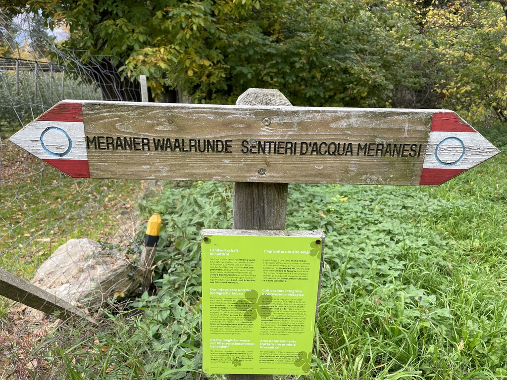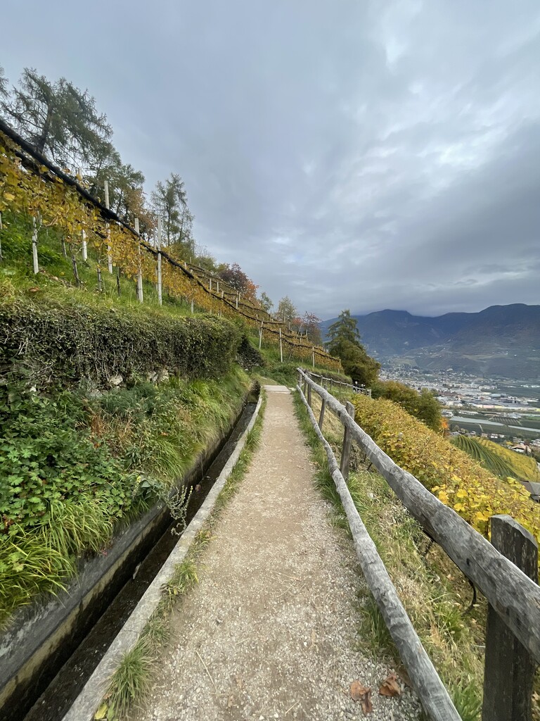 Wonderful loop around the city of Meran following the typical “Waalweg” (waterways) small water channels for the farmers.