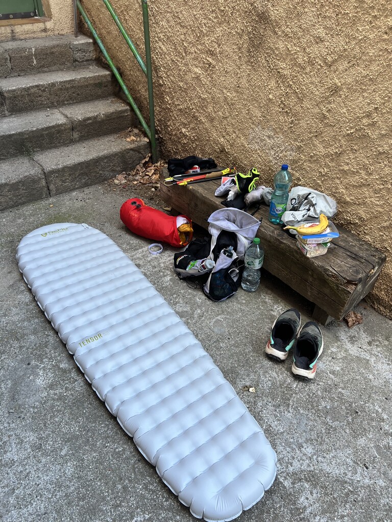 - Jour 1 : Coup de mou mental dès les premières heures. Un appel FaceTime avec des amis et ma copine m’a remotivé. Nuit courte derrière une salle municipale, rythmé par les aboiements de chiens errants.