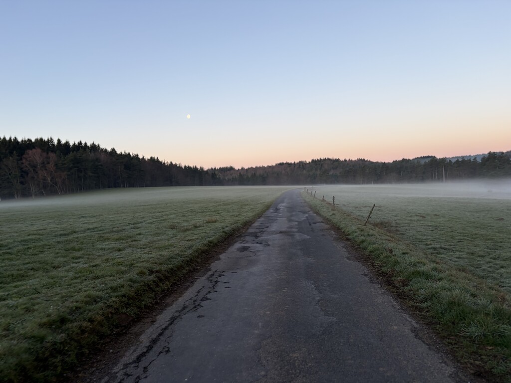Je m'élance de Saint-Agrève un peu avant 7h, avec un temps frais et sous un beau ciel étoilé et complètement dégagé. Après des semaines de préparation, je ressens un peu d'émotion mais elle est vite dissipée par la simple joie de courir et la perspective d'une belle journée à courir dans les Monts d'Ardèche.