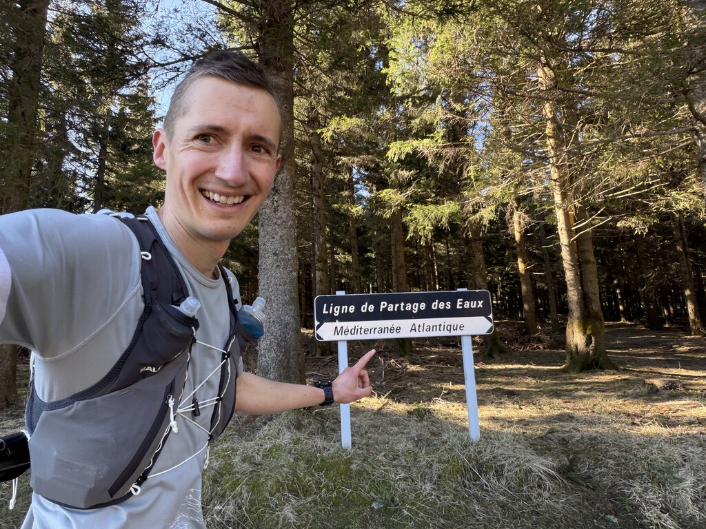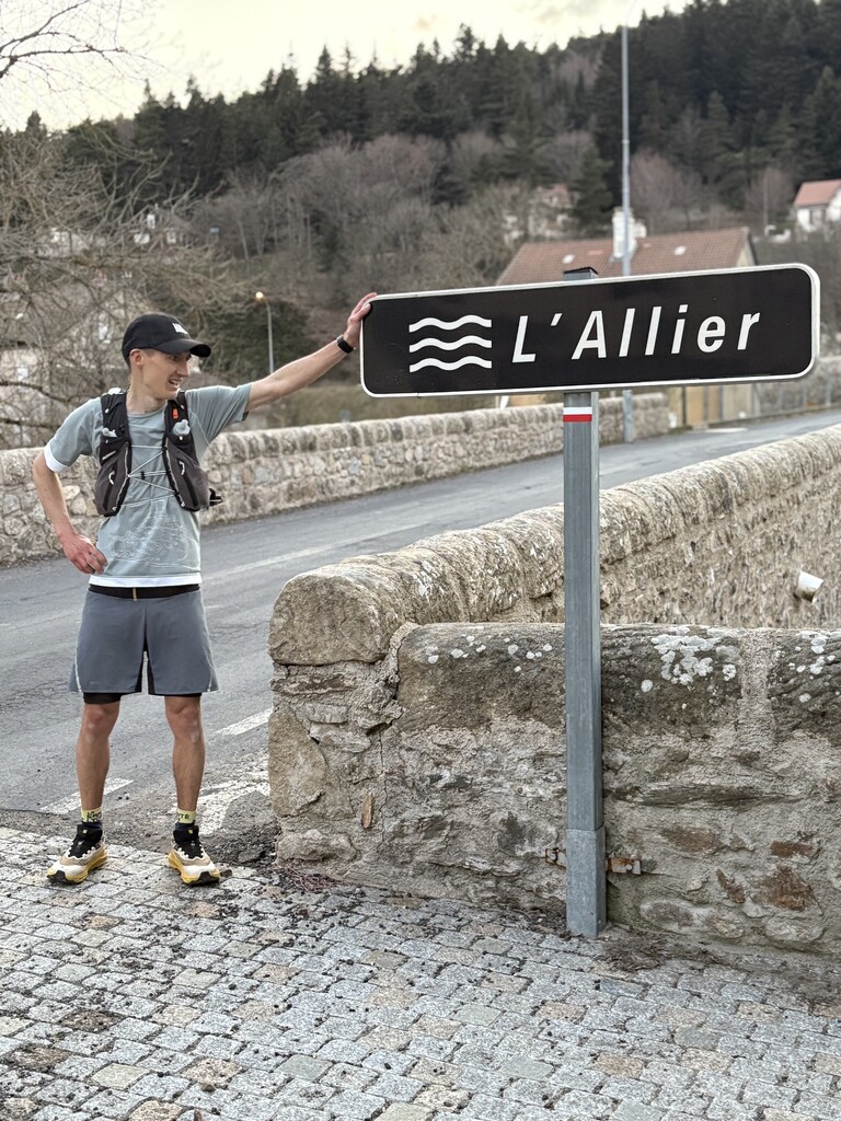 Je termine les 16 kilomètres restants en trottinant, sans prendre de risques, et arrive à la rivière Allier, à la Bastide-Puylaurent, juste avant le coucher du soleil. C'était une journée magnifique et un chemin incroyable.