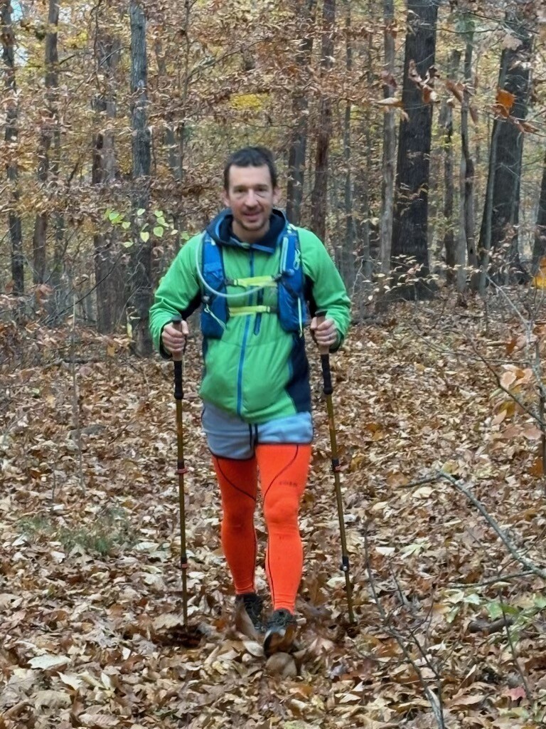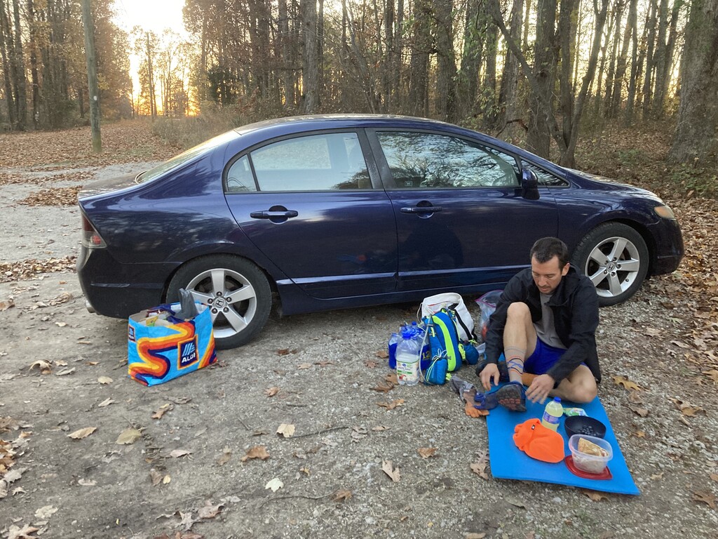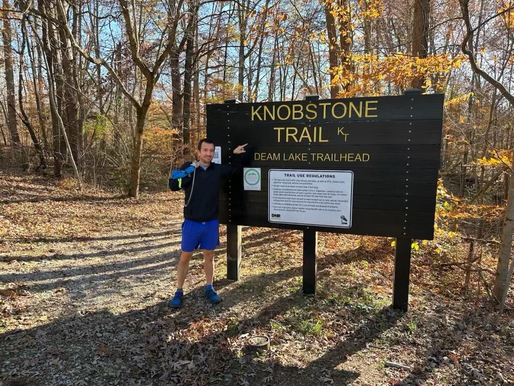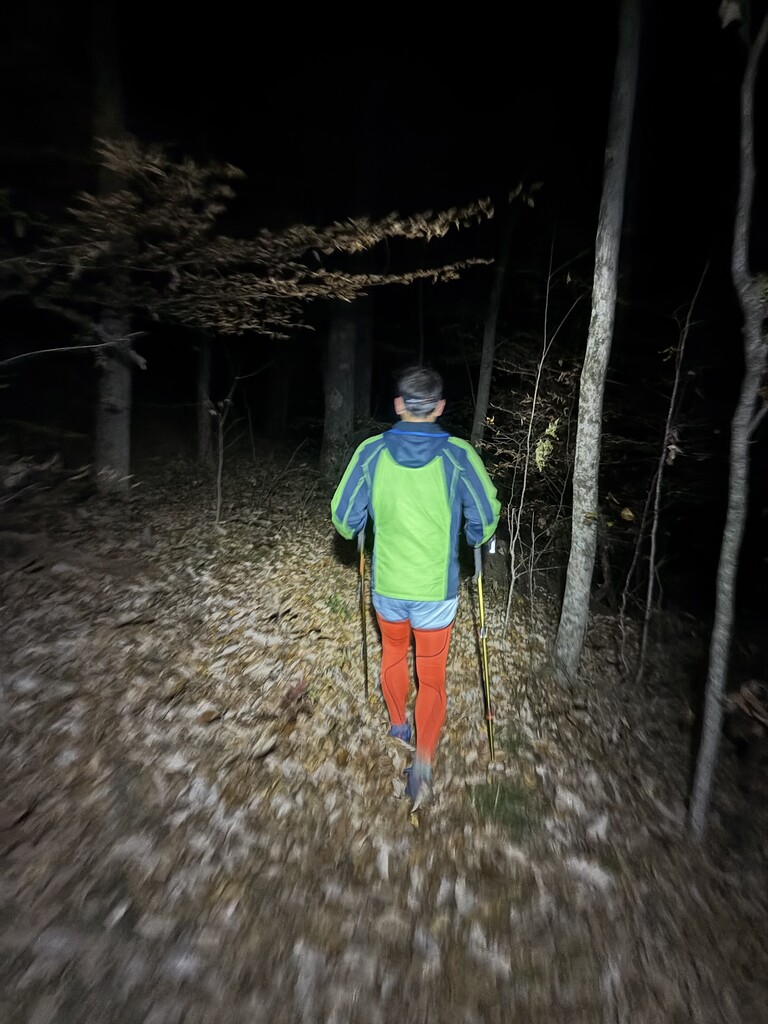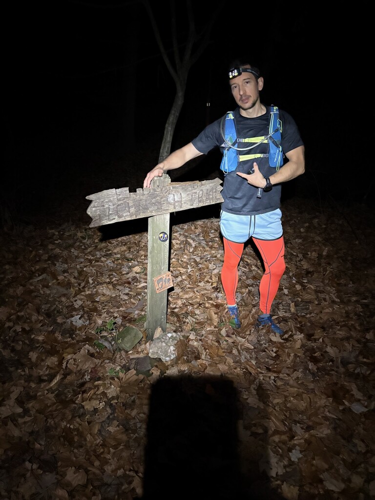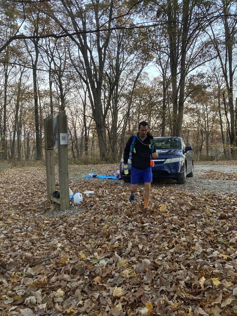 Got lost many, MANY times, especially in the dark on the second night, even with my pacers. Several times I not only lost significant time but also accrued extra distance (obviously). I followed the official KHT at all times, including the Tecumseh reroute around the railroad closure (which no one actually takes). I took 2 total power naps of six minutes each. I filtered water several times along the original Knobstone and did a few long stretches solo early on.
