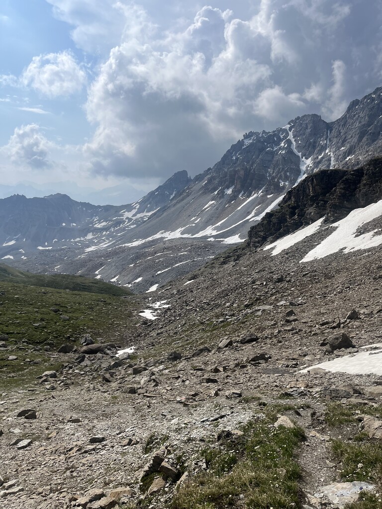 After the huts, I descended into Safien Platz before climbing back up to Glaspass. A steep and steady climb. After a short downhill to the Carnasus creek, I started the final climb to the Carnusapass. Just as I reached the pass around 1pm, a thunderstorm rolled in bringing lightning, wind, and hail, which stayed with me for the remainder of the route back to Wergenstein. The final descent was muddy and slick, making the last section more tiring than expected.