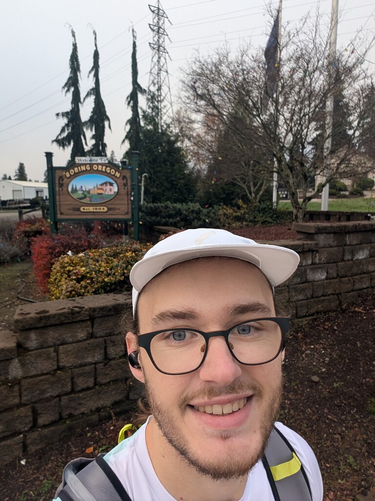 I took a photo by the 'Welcome to Boring' sign, started my watch, and set off. My goal was to average ~7 minute miles for the attempt, and ended up averaging slightly under that. Weather was perfect, and I got really lucky with road crossings. I only had to stop for a few and each was a <10s delay. Much of the trail is long sweeping curves, so I tried to follow the tangents and hug the inside line as much as possible to prevent running a lot of unnecessary distance. My Stryd measured >22 miles, so I'm not sure I did a great job at that.