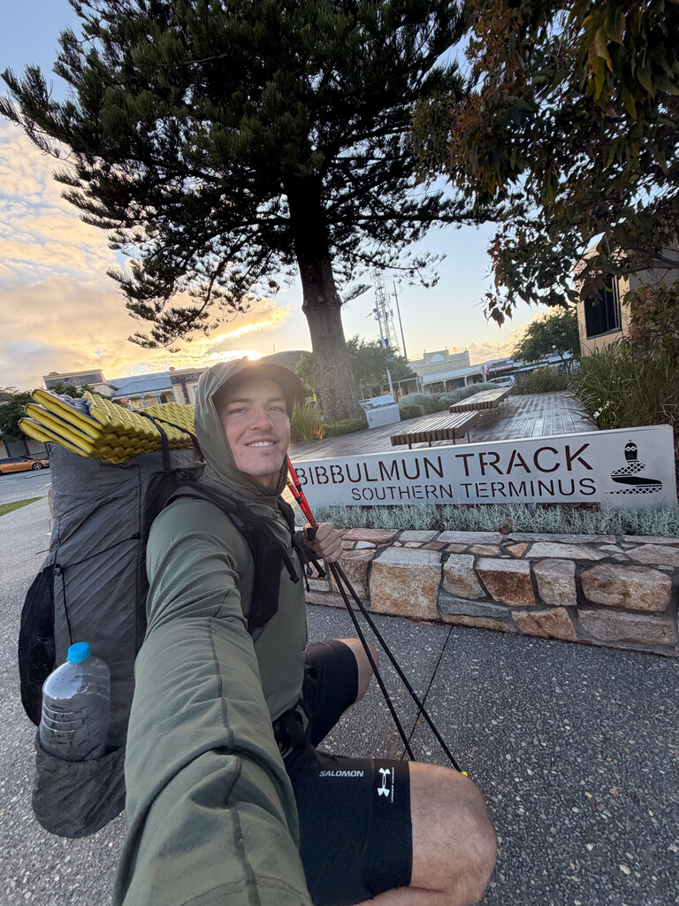 I left the Southern Terminus at Albany this morning at 6:00am on the dot, with 1,000km ahead of me on my favourite trail in the world. Fresh legs and some road walking made for a quick start. This section of trail is unbelievable beautiful, along the coast with sweeping views constantly. I passed by the first of 49 track campsites, signing the logbook, and not stopping long. With my pack at its heaviest today, I was planning a modest 55km or so to West Cape Howe Campsit. I arrived before sunset and was tempted to push further on to get a jumpstart on a big detour that I would have to make tomorrow but decided to keep to the plan for now. Solid first day.