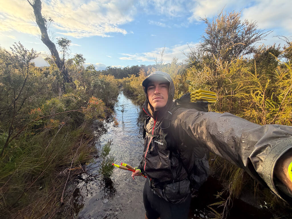 The day started well, moving fast through many flooded sections of trail and slowly warming up despite some more unforecasted rain. I passed by Dog Pool hut quickly, chatting to a couple other thru-hikers briefly. I had a good stretch of mostly dry trail for about 15km before getting very wet again towards Lake Maringup hut. This was my first time at Maringup, having to skip it due to a closure on my first end-to-end in 2021.
