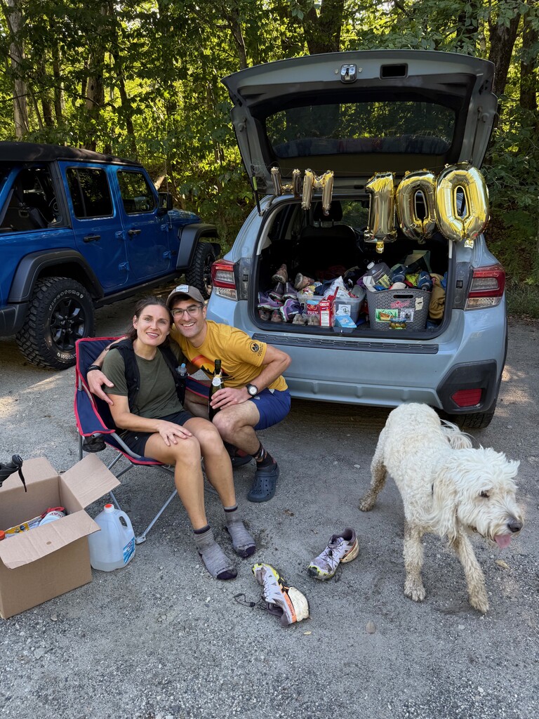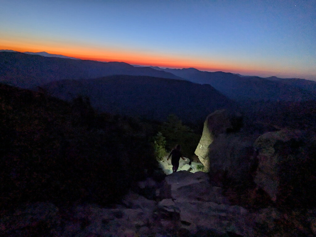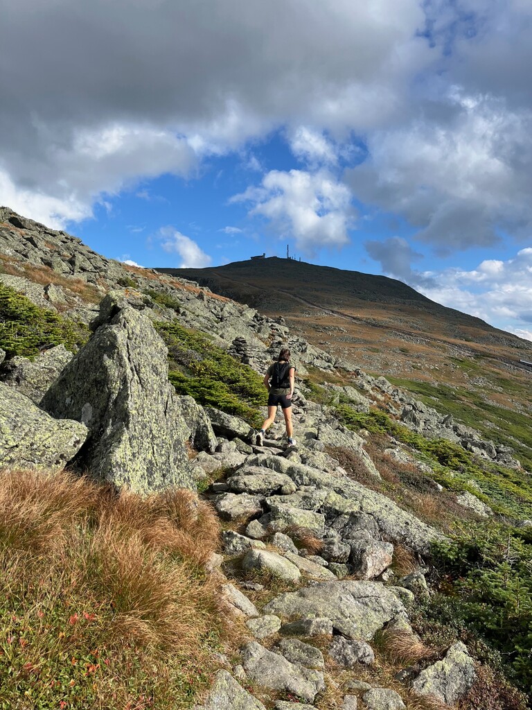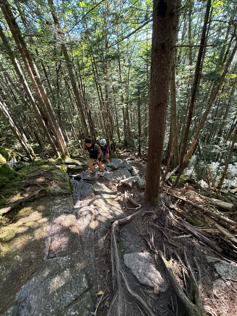 This was the most rewarding route I've ever completed and I couldn't have done it without some amazing friends. I pulled together crew and pacers pretty last minute as I scrambled to take advantage of a mid week weather window to beat the forecasted rain. I started the day traversing the Carter Moriah Wildcat ridge with Chris Dailey, and made quick work of the range. He filled my bottles at Carter Hut which was extremely helpful in saving time and mileage. I realized at the start that my Garmin tracker was not charged, so JP took it home for emergency charging and we started tracking at Pinkham, which lasted the rest of the route. Thunder and lightning hit at the bottom of the Wildcats and was directly over our heads! A bit ominous knowing the Presis were up ahead. After a quick stop at Pinkham for resupply, I started up Madison with JP, who paced the entire Presi section to 302. It rained on Osgood, but in the alpine it was a perfect day- low wind, sunny and dry rocks. The light in the Presis was incredible. JP refilled my water at Madison Hut and Lakes. We kept a consistent pace and were treated to a beautiful sunset on Webster Cliff. Squall met me at 302 and wished me well going into the night as I scarfed down some ramen. Joffrey jumped in for the entire pemi section, muling and keeping me awake and calm. I was most nervous about the nighttime, but it passed quickly and the climbs didn't seem to last as long as they did in training. Joffrey lent me his Kogalla waistbelt, which was super helpful and kept me from falling even once. We saw so many toads! Joffrey helped me refill at Zealand and Galehead, saving me time. Some red hues crept into the horizon coming over Lafayette and Lincoln, and we dipped down Liberty Springs as the sun rose. Alyssa Godesky kept our resupply quick and efficient at the 93 crossing, where I picked up Amber Constant and Chase Hall. They kept the energy levels high as we traversed the Kinsmans and the heat rose. The 11 miles between South Kinsman and 112 were the hardest and that's where time started to slow down, but the pull of Moosilauke kept us going. Once I hit Beaver Brook I couldn't have been more excited. I love Moosilauke and I know every inch of it. John Molinski paced me for the last section, and we cruised down Glencliff, where Chris Dailey and Sarge intercepted us. Emily Angelillo and Drew Prescott jumped in from Glencliff to 25. The last mile was the fastest one, and my knees and feet told me so. Amber, Chase, Matt Zanchi, Leah Lin, and Annie Farrell joined at 25 and made the finish line extra special. I'm so grateful.