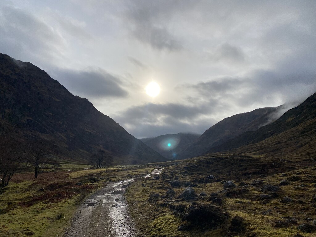 I ran the affric-kintail way starting from Morvich and ending in Drumnadrochit. It was a beautiful day out, the trail was very wet and muddy in most places because of recent rains. I ran it completely solo and unsupported, carrying all my gear and food, and filled up with water from the many streams / rivers along the way. My husband dropped me off at the start and then drove back to Drumnadrochit to drive me back home at the end.