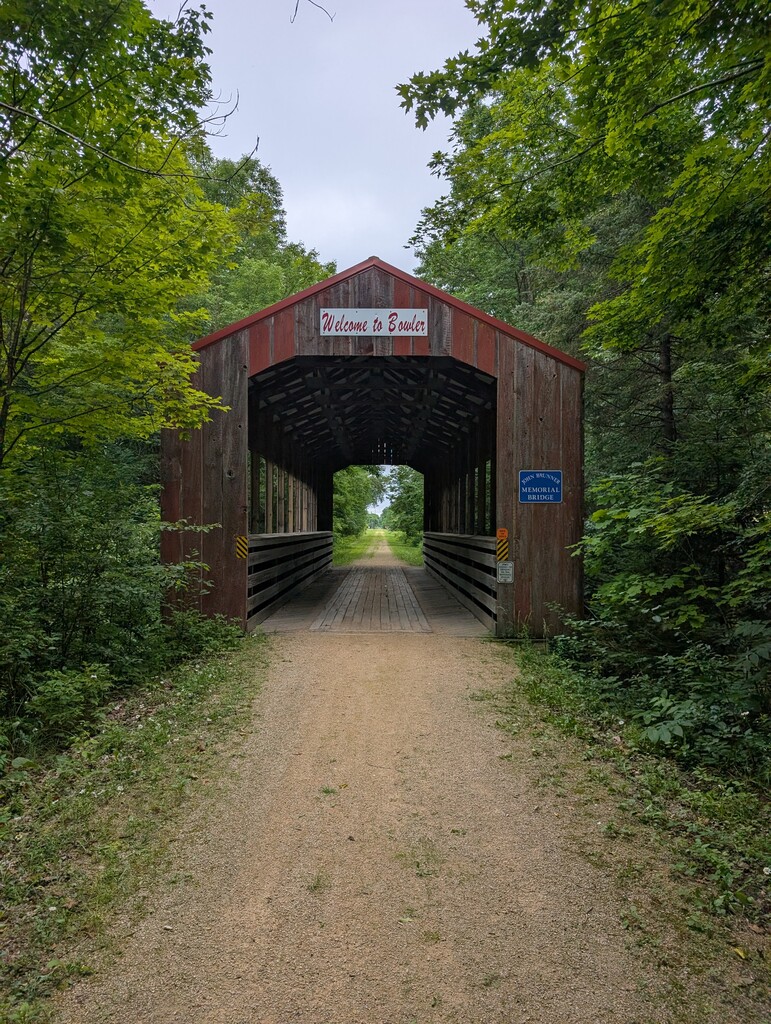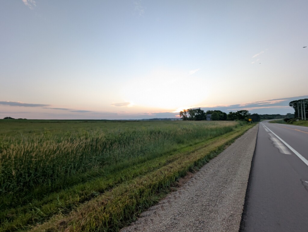 Day 1 began at 4:56 am on the Drawbridge crossing into Prescott, WI from Minnesota. The weather was astoundingly good every day. July 6 saw a high temp around 84 degrees , lots of sunshine, and relatively low humidity. This was the theme most days. I followed Hwy 10 from Prescott to Durand. I followed the Chippewa River State Trail from Durand into Eau Claire. There was a trail closure half-way between Durand and Eau Claire that made me add a mile to the route. Due to darkness and tiredness I left the trail for a shorter route via road the last few miles. I finished my day at the hotel for the night. I was very low after day 1 and it was then that I began to consider shortening Day 5 to Kewaunee instead of Northport.