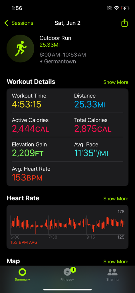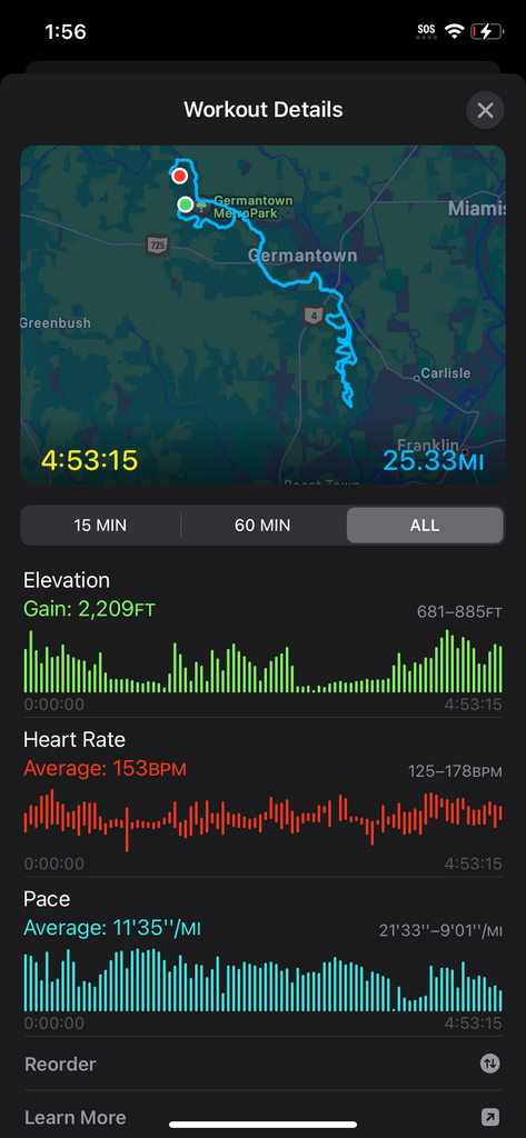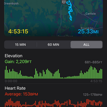 My watch died at 25.33 miles so the data isn't perfect, but clocked the time upon getting back during the twin valley trail challenge that year (2018)