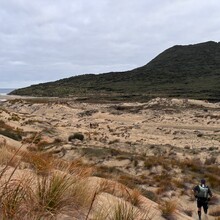 Right out of the hut we crossed a massive sand dune - impressive at nearly 300m elevation. When we reached Waituna Bay Beach, Chris spotted a Leopard Seal in his spotlight, it even turned its head and looked straight at him, but when he momentarily switched his spot off and then on again it had miraculously vanished! We all really struggled through this next section and hit the caffeine hard to push through to daylight. It was a shame to be passing this section in darkness as it is reported to be stunning, good reason to get back there one day! There is another High Tide risk at West Ruggedy Beach, and we managed to hit the beach pretty much bang on high tide, however it was easy enough to get around the rocky outcrop in between sets of waves. We saw two Kiwi on this beach, then unfortunately came across a feral cat and as we climbed the sand dunes we were charged at by an overly confident stampeding mouse! By the time we reached East Ruggedy Hut we needed a stop and decided to take time for some foot care.
