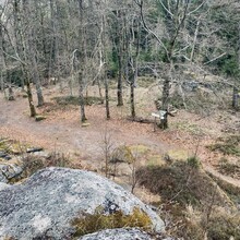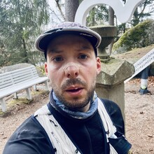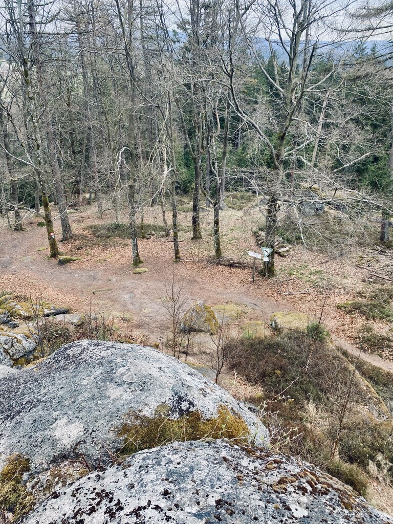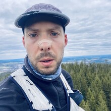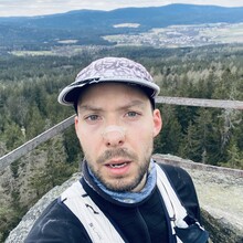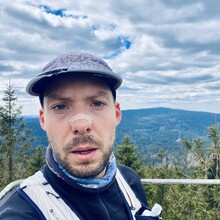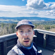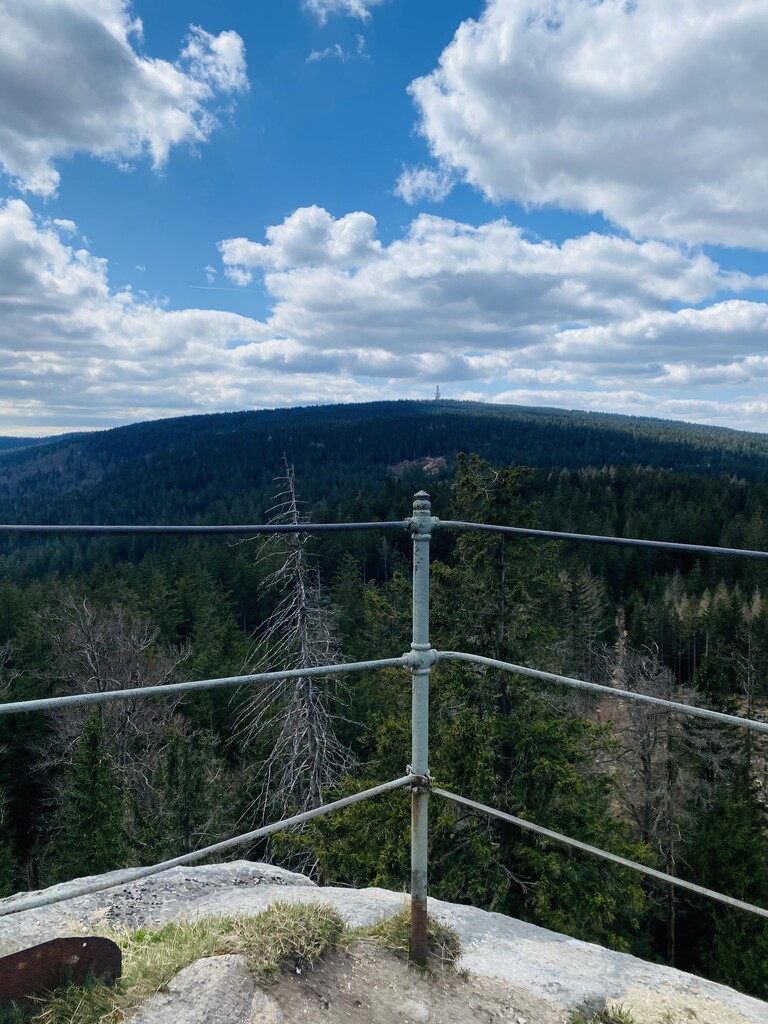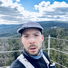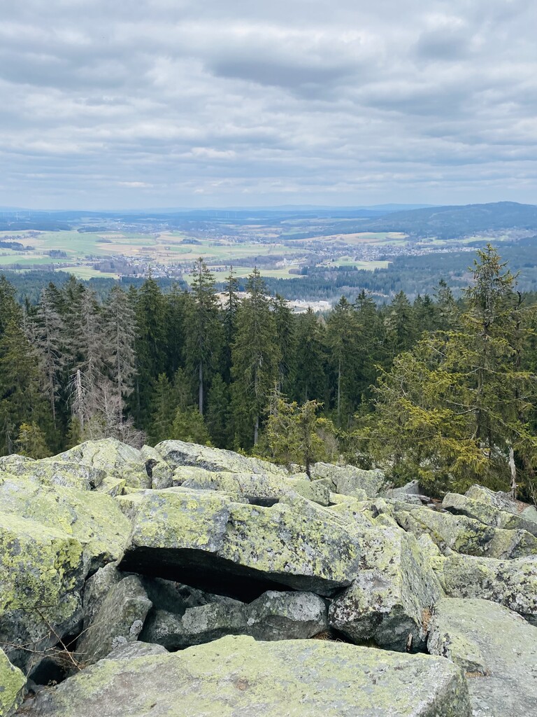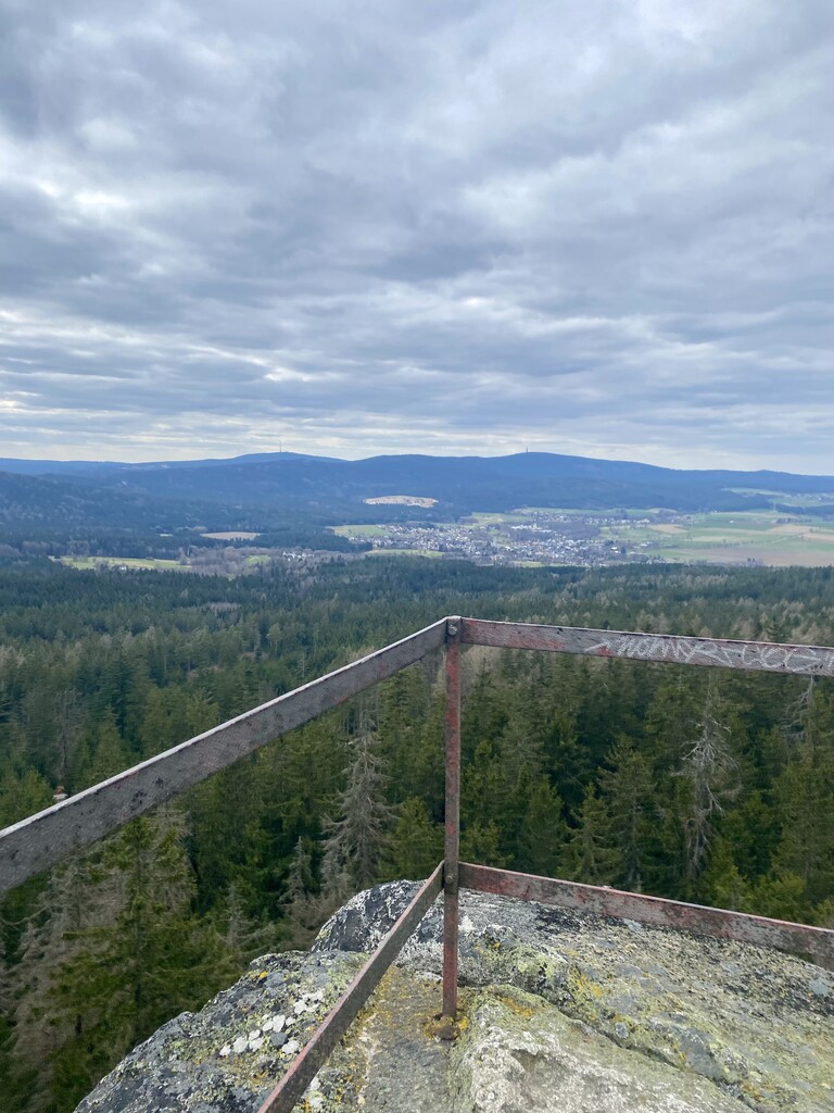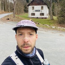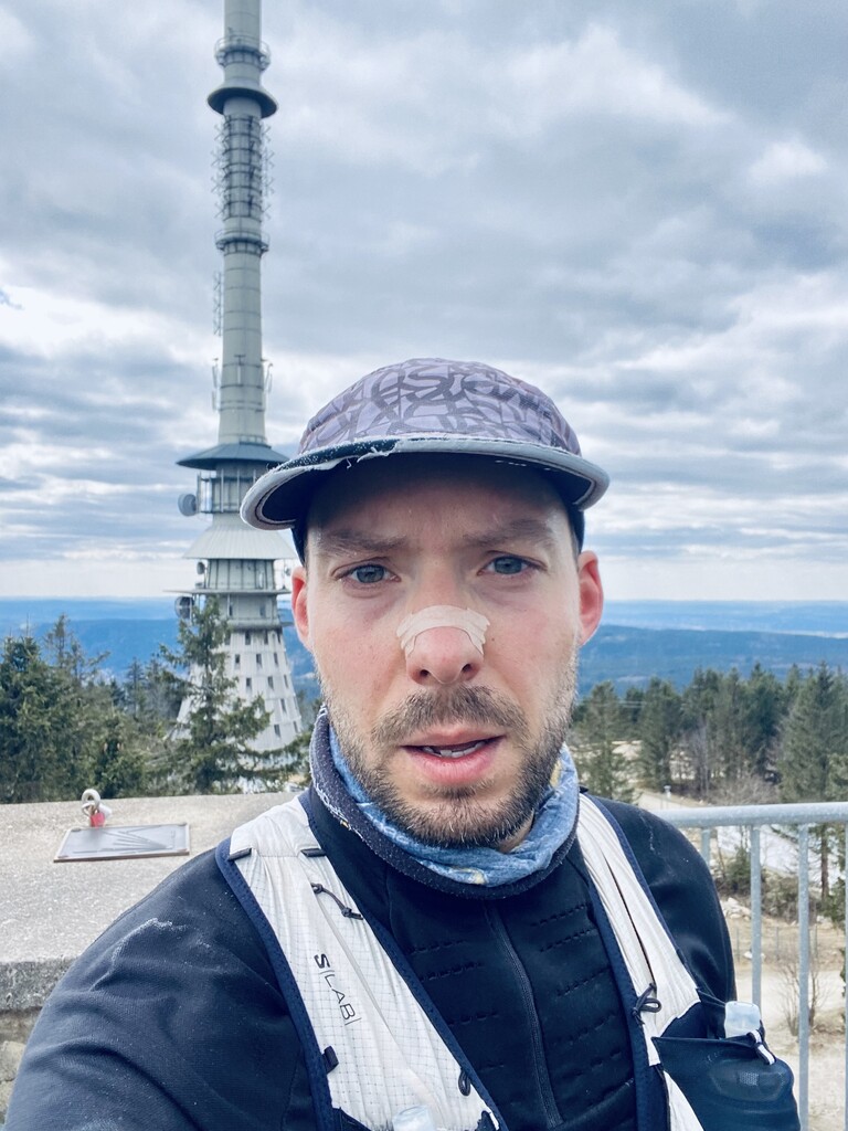 Auto bei der Alten Vorsuchhütte geparkt kurzes warm up und um 10:00 Uhr losgelaufen, auf dem Weg zur Piste hoch sehr schwere Beine, fühlt sich nicht gut an, um 10:09 Uhr oben auf der Schönburgwarte (Kornberg) angekommen, beim Downhill leichte Krämpfe in beiden inneren Oberschenkel-Muskeln, Zweifel machen sich breit ob das heute was wird, im flachen Stück Richtung Kirchenlamitz immer noch sehr schwere Beine, Krämpfe lindern sich, um 10:59 Uhr oben auf der Aussichtsplattform am Epprechtstein, Teil des Verschlusses am zip Beutel fürs Handy reist ab, von hier an immer ein ziemliches Gefummel das Handy aus der Tüte zu bekommen, die zügig weiter Richtung Waldstein, Krämpfe fast weg, kurzer Stop um Flaschen zu wechseln beim Aufstieg + kurze Pinkelpause, oben auf der Schüssel (Waldstein) um 11:38 Uhr, Sonne kommt raus, kurz zeitig sogar etwas warm, zügiger downhill Richtung Weißenstadt, oben am Aussichtspunkt Rudolfstein um 12:24 Uhr, auf dem Backöfele (Schneeberg) um 12:46 Uhr, weiter Richtung Nußhardt, um 12:57 Uhr ist der Gipfel erreicht. Schneller downhill nach Karches, Stopp am Brunnen um Flaschen aufzufüllen, es wird bewölkter und kühler, Handschuhe raus, Pinkelpause beim Anstieg, um 13:38 Uhr oben am Asenturm (Ochsenkopf), spüre langsam meine Beine, die Platte um 14:25 Uhr erklommen, schneller downhill bis zum Silberhaus Parkplatz, Anstieg zur Hohen Matze zieht sich, kurze Pinkelpause, am Gipfelkreuz 14:56 Uhr, Kopf beginner zu scherzen, wahrscheinlich zu wenig Wasser, trotzdem zügiger Anstieg da mir langsam die Zeit ausgeht, oben am Kösseine Turm um 15:26 Uhr, erstes Stück vom Weg recht unwegsam auf Grund umgefallener Bäumen, werde langsamer, Großer Haberstein um 15:41 Uhr, 15:47 Uhr am Burgstein Felsen, downhill Sprint auf Forststraße, 15:55 Uhr am Denkmal an der Luisenburg.