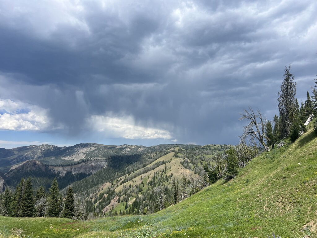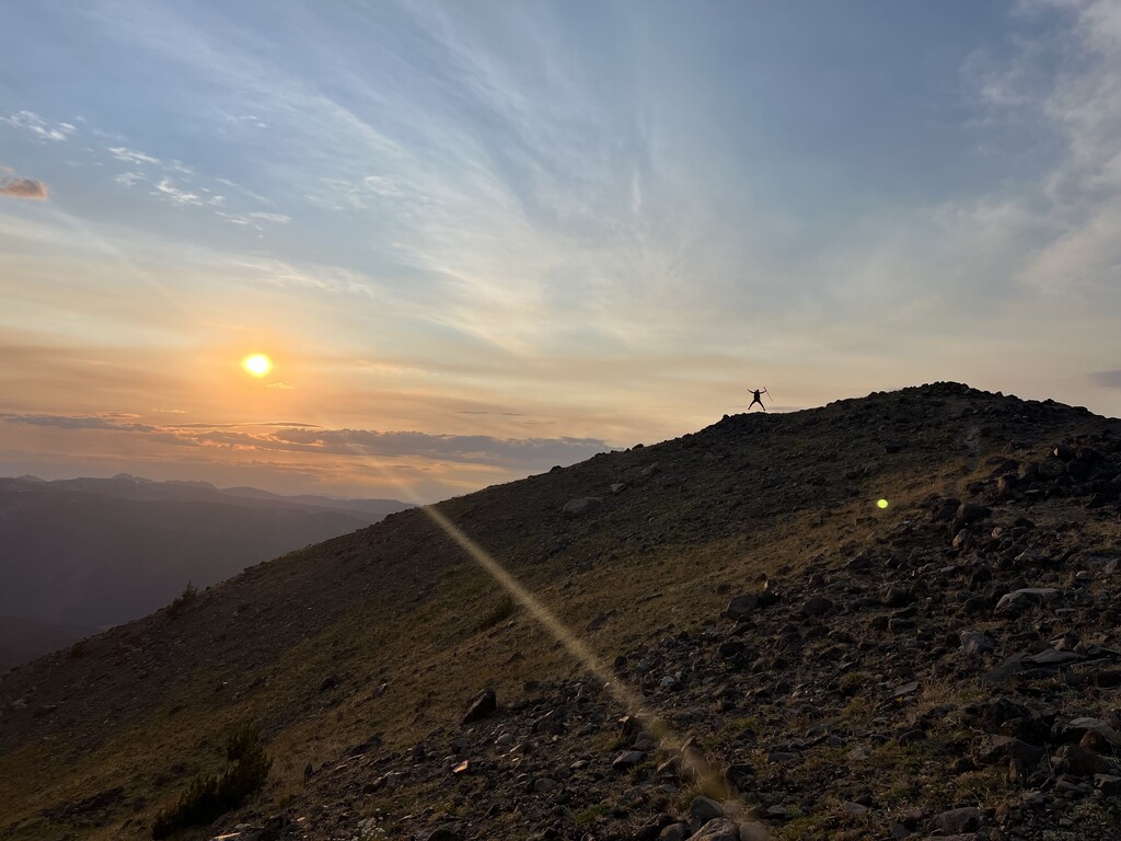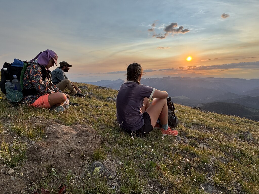 Dark clouds loomed for a few hours and heavy rain seemed to be hitting everywhere except on us! The trail became significantly less obvious and in some cases disappeared entirely along the ridges (especially around Eaglehead mountain) but we stuck to the map when no trail was clear. Our next water stop was a spring just south of Windy Pass cabin where we had dinner around 5pm. The next ridge walk was our favorite views of the whole trip, made even better by the sunset.