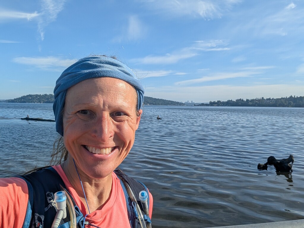 I started at Landsburg as early as possible without a headlamp. The trail is easy to follow until you hit Renton and need to navigate streets for about a mile. It was hot on the way back; I was disappointed that all the water fountains were out of order, but I (barely) brought enough on my own. The views of the river all along the trail are a treat, and reaching the lake was a treat--so pretty and peaceful.