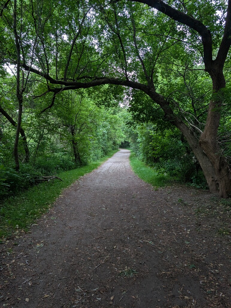 I started from the northern trailhead because I wasn't sure if the southern would be open early in the morning. I was glad for the early start because it was a warm and humid day. Nice views of the river; pretty tree canopy as well. A great way to start the day on vacation :)
