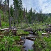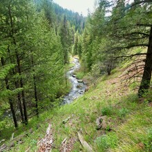 I started at the Boeing Field trailhead (interesting history: https://crookcountyhistorycenter.org/2021/01/incident-on-wolf-mountain) and went counter-clockwise. The day was good. I hit piles of snow higher up and in shady areas, but those sections were relatively short. Without GPS, however, it would have been impossible to follow the trail. Because of the lingering snow, there was plenty of water on the loop. The river crossings were easy, but I had to get wet once. I didn't see a single person, which is not unusual on this loop. There was plenty of fresh cougar scat, however.