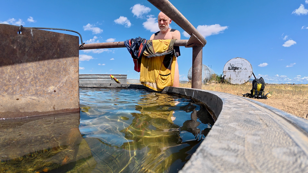 Water was sparse. I was able to refill bottles and even do laundry for the first time at two cattle troughs along the route. The first trough had flowing and relatively fresh water. The second trough’s water was questionable at best, but I wasn’t in a position to be selective.