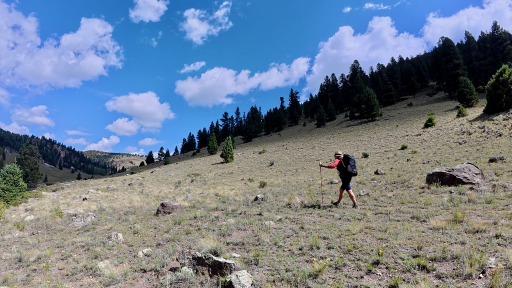 In the early afternoon, somewhere along the remote high country trails, I encountered Aspen—the one and only NNML hiker I would meet during the entire loop. This speaks to both the route’s difficulty and its relative obscurity compared to more famous long-distance trails. Aspen had started the loop clockwise in spring but was forced to bail due to snow conditions. Rather than abandon the goal entirely, they’d returned to complete the route in several staged sections. We exchanged some trail intelligence: water source reliability, recent weather impacts, trail conditions ahead.
