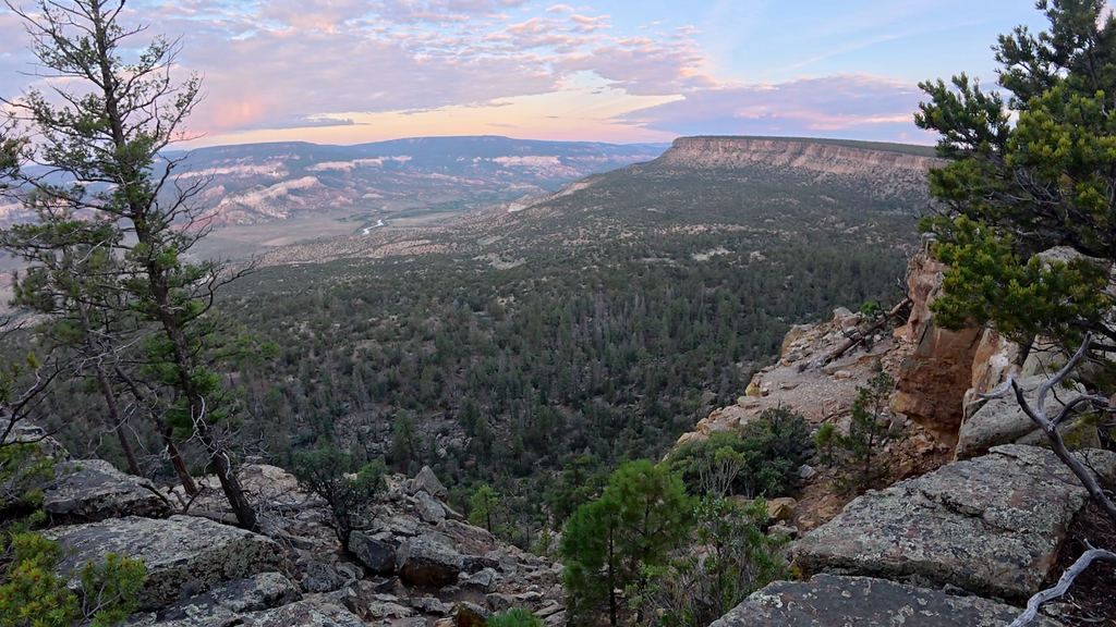 At 1:30am, I woke to rain beginning to fall. Rather than wait for conditions to worsen and struggle with tent setup in the dark, I made the decision to pack quickly and start moving. I figured the “extra miles” completed in darkness would be appreciated later. The trail led up to the Chama River Canyon rim and followed it for several spectacular miles. After daylight arrived, the views proved to be among the rather impressive. The descent from the rim down to the Rio Chama was rather rocky and slow. I crossed the Rio Chama on a footbridge, grateful not to face another potentially dangerous ford.