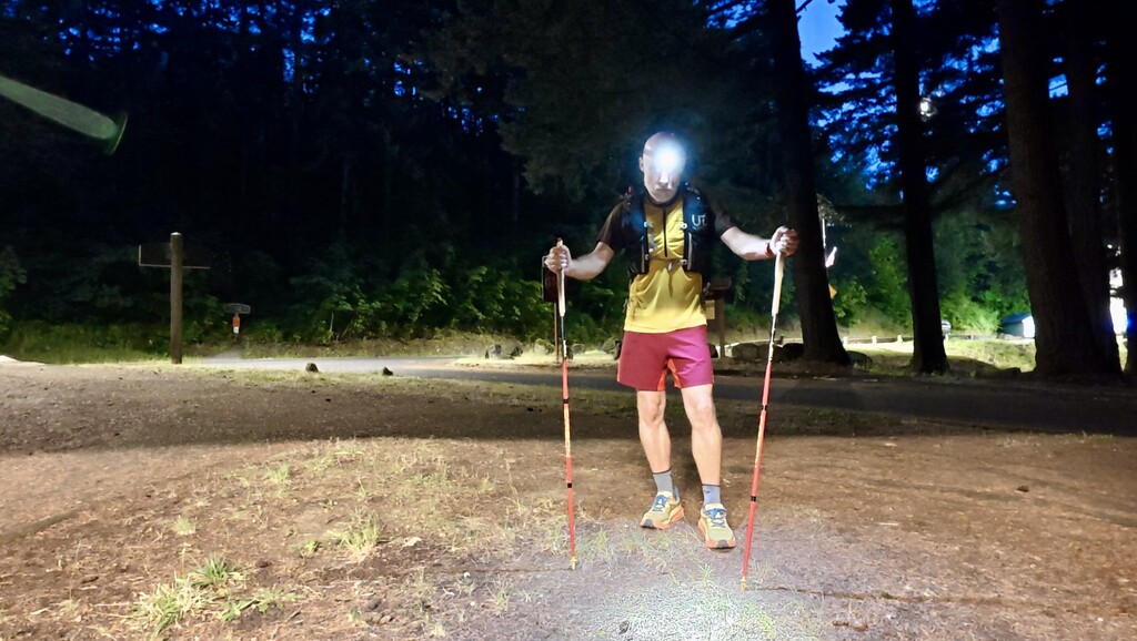 I rolled up to the Bridge of the Gods before 5am, pessimistic as always. Within the first mile, a bee stung me while I was dodging poison oak. A perfect preview of the journey ahead. The heat cranked up early and never let up. I ended up wearing just a T-shirt all night and could've saved myself the weight of those extra layers.