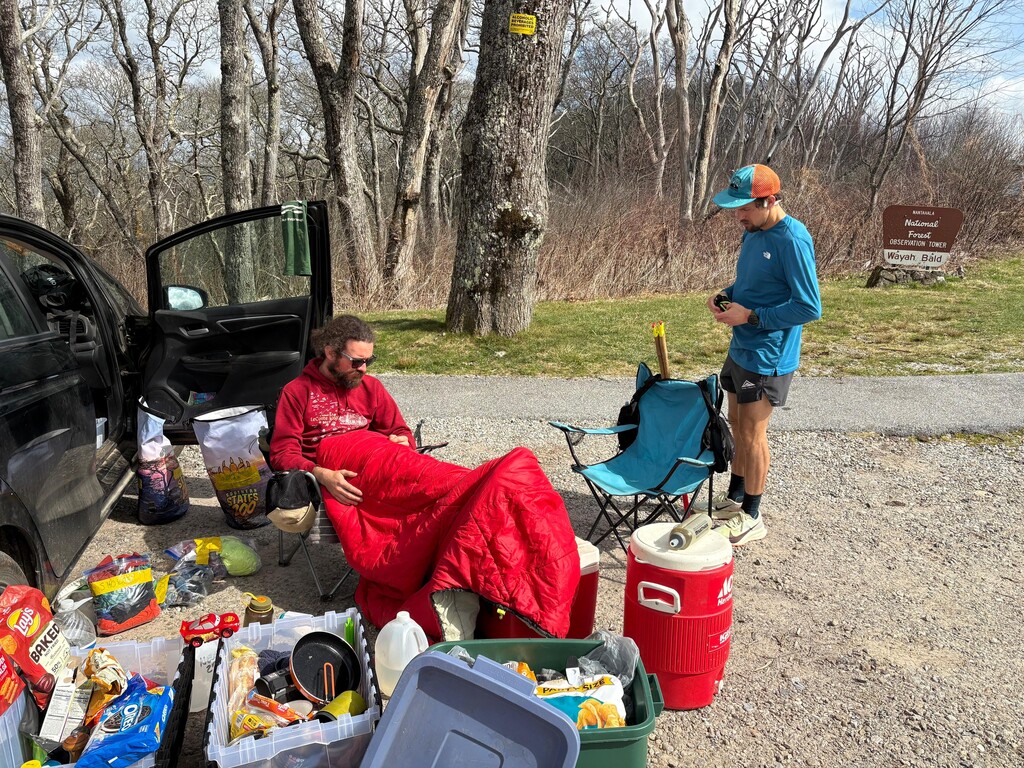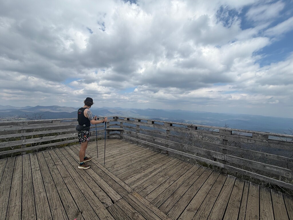 We had a smooth first 50k with my first pacer, which included the climb up Rabun Bald. I changed pacers at the NC/GA border and my wife paced me up Scaly Mountain into the first night. With wildfire smoke in the area I struggled the first night, considering dropping. My crew on the ground, though was able to find a rescue inhaler and we made it into the Hickory Knoll parking lot around 1am, where I slept for the first time (about 1 hour).
