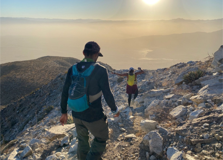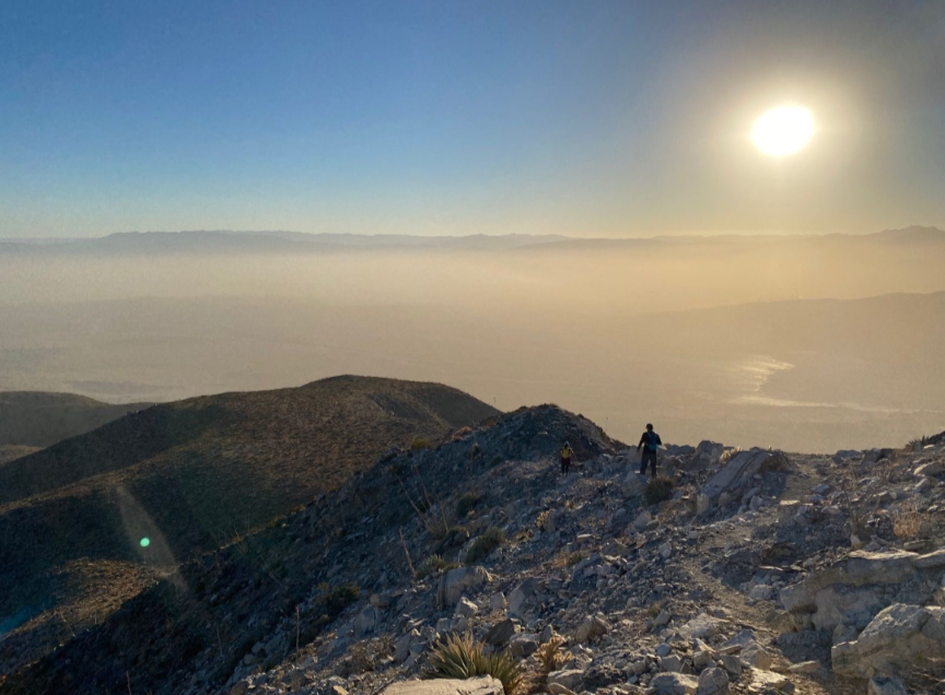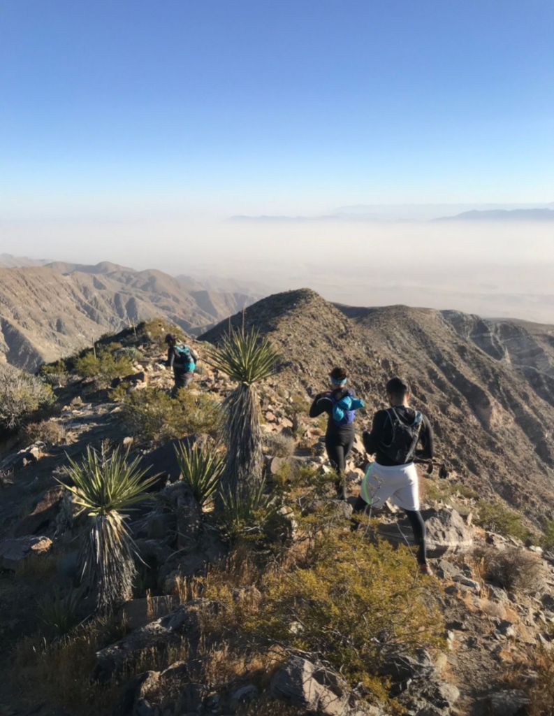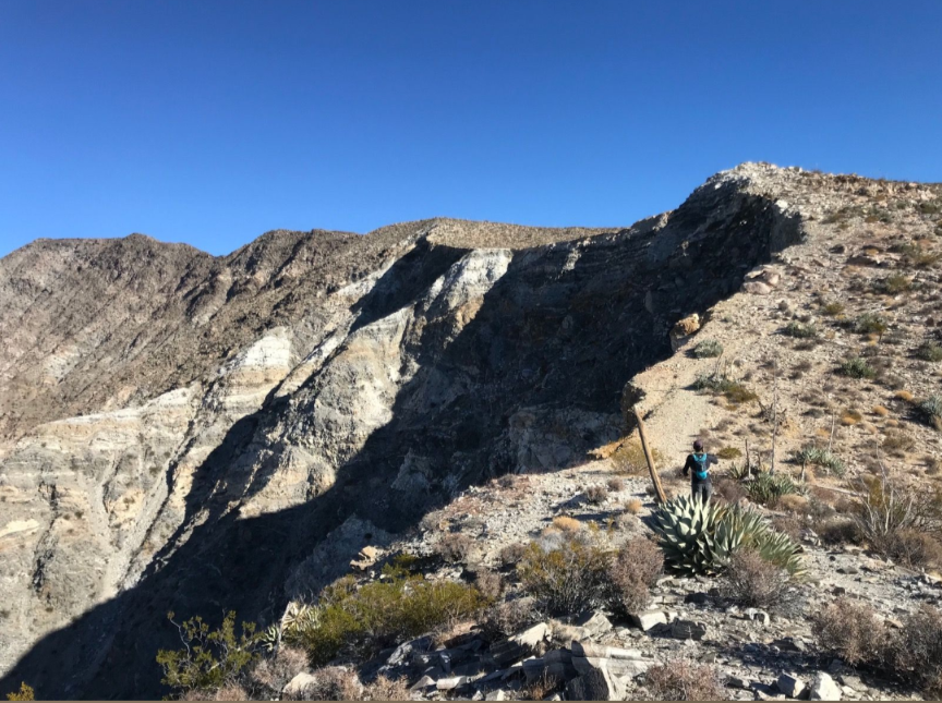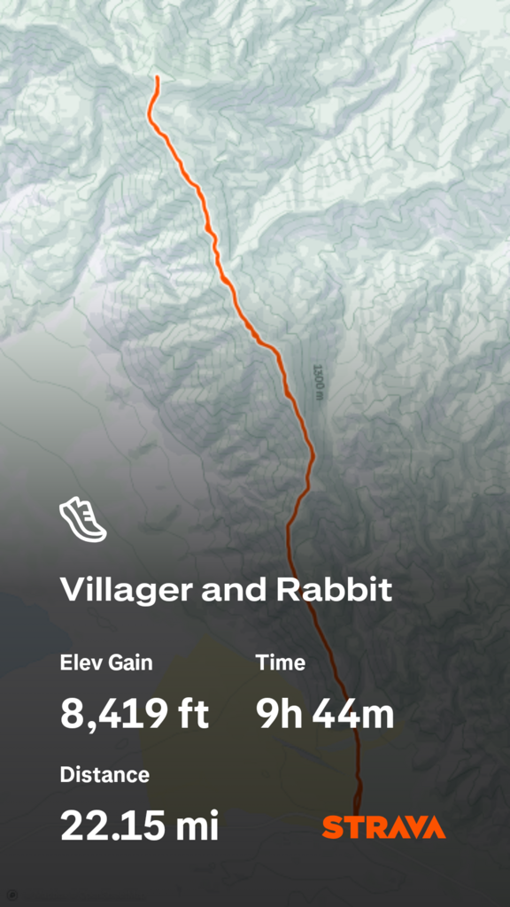Jose and I started at 7:18am from the north shoulder of the Borrego Salton Seaway. We carried our fuel and water and were supported by our friends Eli and John. We climbed up to Villager Peak and then continued the ridgeline to Rabbit. We got 22 miles and 8400' of gain in an elapsed time of 9hrs44min13sec.