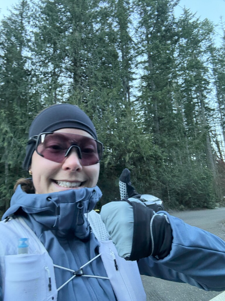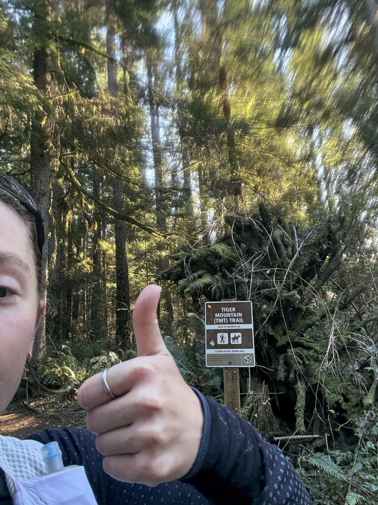Started the Tiger Mountain Trail out and back traverse saturday Jan 24 on a very chilly sunny day. Wanted a fun solo day on Tiger & thought I might be able to knock a few minutes off the unsupported fkt so I brought ~2L of water, a filter, and a bunch of snacks & set out around 9 am. It was really cold but warm once getting moving so I ended up taking off a bunch of layers and carrying them. So many folks out and tons of flybys and including a few folks hearing me audibly freak out at the clearcut below middle tiger on how beautiful Tahoma was looking today. Great dogs out there too. I’d only seen the first few miles of the TMT from West tiger so getting to see its entirety was pretty special. Filled up a soft flask w a filter on my way back, there were a lot more water crossings than I expected! Some ice up top too right below WT2. Got a little turned around when TMT follows the FS road for a sec and waddled around for a minute or two confused but had the route on my watch. Technology!