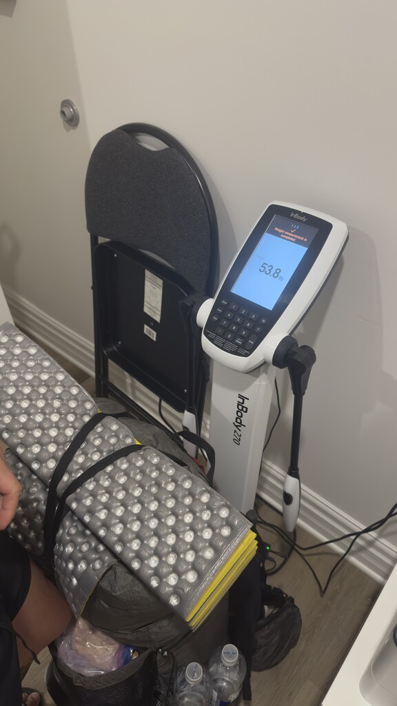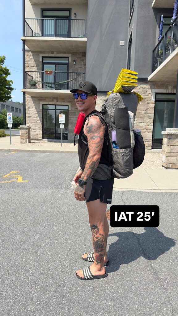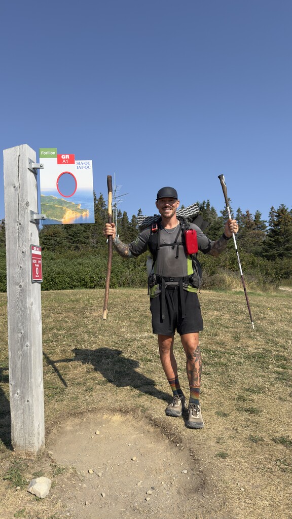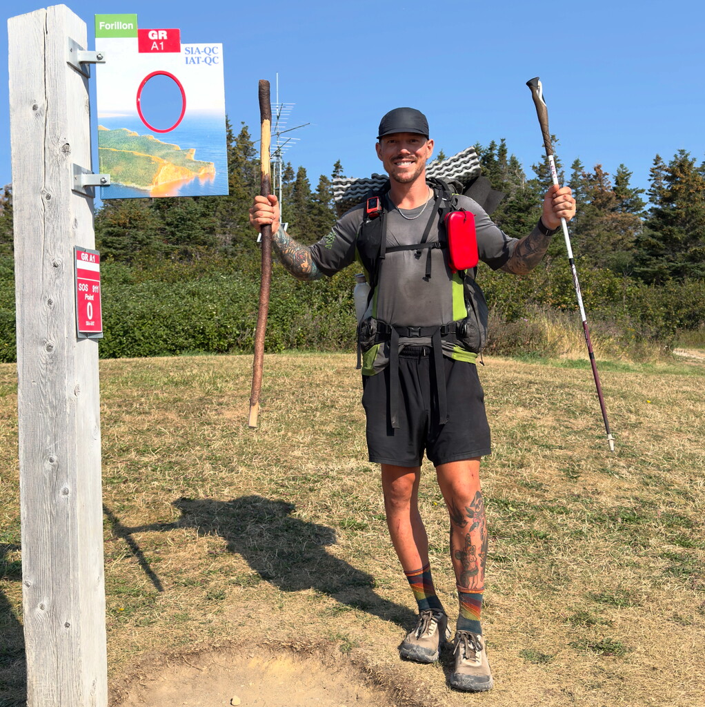 I carried all my nutrition and gear to go from Matapedia to Gaspé in 13 days 4 hrs and 30 min. My backpack weight started close to 55 pounds because of last minute gear packing. I slept on trail and got no help from others, filtered water on trail and did not stop to get resupplies.
