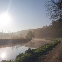 Quelques robinets le long du canal que j'ai réussi à trouver un peu au hasard. Juste une déviation quelques kilomètres avant Evran pour travaux à cause des inondations et qui m'a rajouté 2 kilomètres, rien de bien méchant mais qui est pas cool pour le mental. Un peu galéré à trouver de l'eau sur la fin avec la poche d'eau qui s'est percée et qui m'a mis quelque peu dans le rouge, j'ai failli me faire remplir ma gourde par un un gardien d'écluse car le robinet public était coupé. J'ai gentiment refusé pour ne pas saboter mes efforts d'avoir emporté toute ma nourriture sur moi dès le départ, il a pas dû trop comprendre pourquoi.