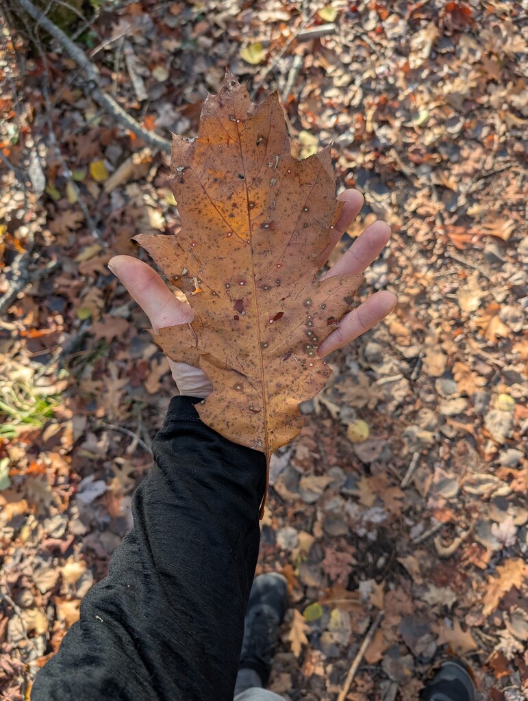 Not sure how many more nice days this trail will have this year so I had 2 lunchtime coffees and went raging through the bush. I started a bit slow and had to make up time, probably because I stopped to take a picture of a mutant giant oak leaf.