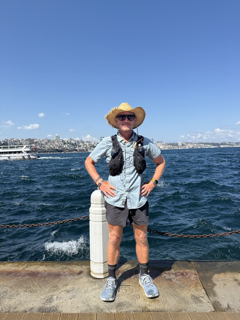 I ran across Europe from the Atlantic Ocean at the mouth of the Douro River in Porto, Portugal, to the Bosphorus Strait at Cankurtaran, Istanbul, Turkey. The route totaled 2,858.6 miles (4,611 km) and was completed in 103 days, 6 hours, 56 minutes.