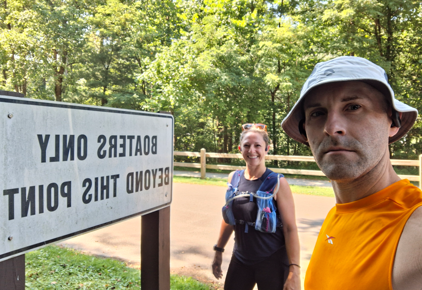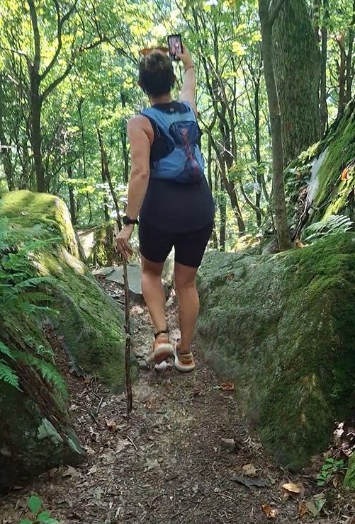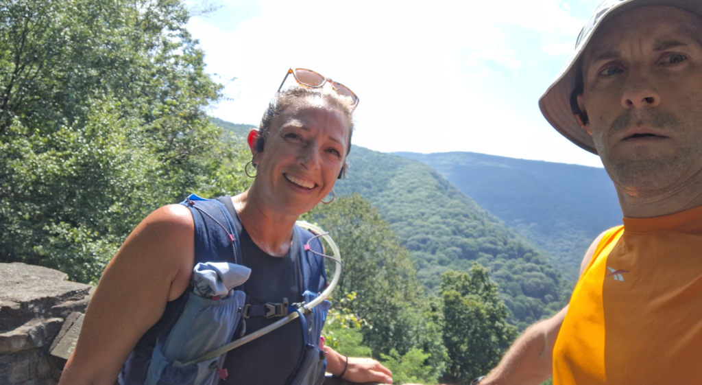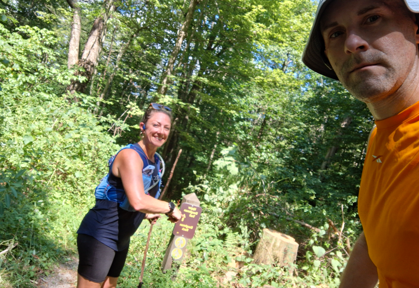 Bethany and I hit baughman up for out 2nd fkt attempt on the day. This is a nice shorter route. We geared and refuled form 1st attempt on the day before starting at the boaters sign. What makes buaghman hard is its basically a steady uphill the who way out. This can take a toll on the legs if not cautious. Plus the roots the 1st mile as well can be dangerous if you dont pay attention enough. There wa 15ish people on the trail total passing some each way. Ity wa a relief when we topped out up top. Was getting hot out but nothing bad yet. well at least it was manageable for the 6.5 miles of this route. This route is more eye pleasing then some of the other trails in the park. Was nice to stop at the overlook on the way back as the creator had route intended to do. Bethany enjoyed seeing the big boulder up top that we ran right beside. and the couple little bridges near the turn around. This trail was actually clear on the day and no trees were down on it.