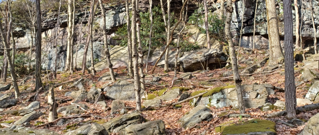 This was the first time I ran the trail clockwise at least I cant remember ever doing it clockwise. It sucked just as bad if not worse than counter clockwise. With the rain the last few days the creek crossing was high so I could not avoid feet getting wet. So like a tenth in my feet were soaked. After that climbing the rocks we tougher. Just that whole first 1.5-2 miles was harder going up then it is coming down. The brier bushes really get you a lot more on way up because of having to go slower uphill they did rip into me more. Seemed like a lot more were across the trail then a few weeks ago. It was a little easier to navigate the 1st have of route the yellow blazes seemed to stand out more but the 2nd half was the typical hard to read and see as they are whole time when running counter clockwise. Saw one turkey today. There was also one guy in the middle of the woods not sure what he was doing may have been working with dcnr cause he was in logging area. Was really too cold to run the route today 37 degree at my car when I got out. I could see breathe real bad at top of the hill so had to be close to 32 degrees up there. Did clean up some trash in parking lot as I left. Want to run the clockwise again because I can do it faster. Today also rocks were slippery and course was wet. So had to watch footing. The last half mile was treacherous. I thought it was bad the normal way going up but even worse today going down, you can really see the sheerness of the edge of hill. There really isn’t much to run on step on its pretty bad angle with no safety edge. So if you slip you definitely dropping 50-100 feet depending where you slip. I was hoping for a better run it just didn’t happen.