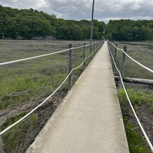 My in-laws have a beach house in Old Lyme where we were staying over the Memorial Day weekend. I needed a long run that could also be an adventure, without a lot of travel. The Branford Trail fit those requirements. I drove to the finish to find a place to lock my bike as this trail "ends" are across the water from each other, about 3.5 miles by car, but probably only 1/4 mile by boat. I locked my bike at a rack in Branford Point. I then drove over to the start but quickly realized there was no place to park because it is all densely packed residential. I backtracked out to where Linden Ave and Sybil Ave meet and decided to park at a hair salon knowing that since it was Sunday they would not be open. This will be a challenge for anyone else trying this. A drop off may be a better plan. I walked jogged to the start only to realize that it wasn't actually the start. The Branford Trail is marked with white circles and the white circles continued on so I followed them all the way up to River Road where there was a flag pole and the last marker I could find. I started there instead of where kory did, but I guess you can decide since he submitted it minus this 1/2 mile.