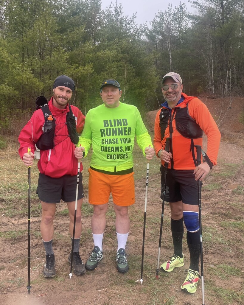 On April 19th 2026, blind runner Denis Leblanc became the first para athlete in Atlantic Canadian history to set an FKT. With a team formed of Brandon McCluskey leading and Jamie Degrace trailing, the 3 set out from the Mount Douglas Bald Trail trailhead at 12:20pm for an unsupported FKT attempt. After summiting the mountain, the boys returned with a total elapsed time of 1 hour 45 minutes and 16 seconds. The trail is made up of roots, loose rock and boulders making this a difficult challenge for a blind athlete but with the use of trail running poles to feel out the terrain and verbal guiding, the plan was a success!