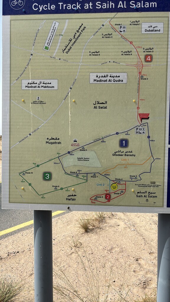 From there, the route would follow the Al Qudra cycle track, which consists of both tarmac and desert/gravel, however I was mainly aiming to stay on the desert/gravel track for the majority.