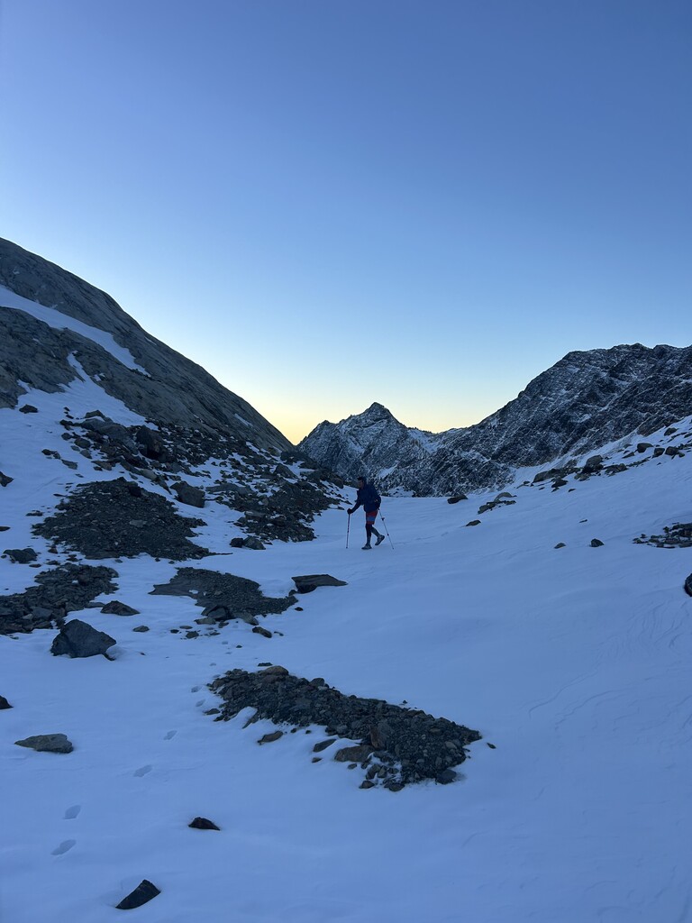 We left the trailhead at 5am, not sure how much snow we would find, and how much it would slow us down. We found the snow starting just above 5,000 feet on the climb up to Spider Gap. From there, we ran over mostly continuous snow all the way through Buck Creek Pass. Most of it was only a few inches deep, but some northern aspects were holding onto knee-deep drifts. It will be easy to drop time on another attempt with less snow up high!