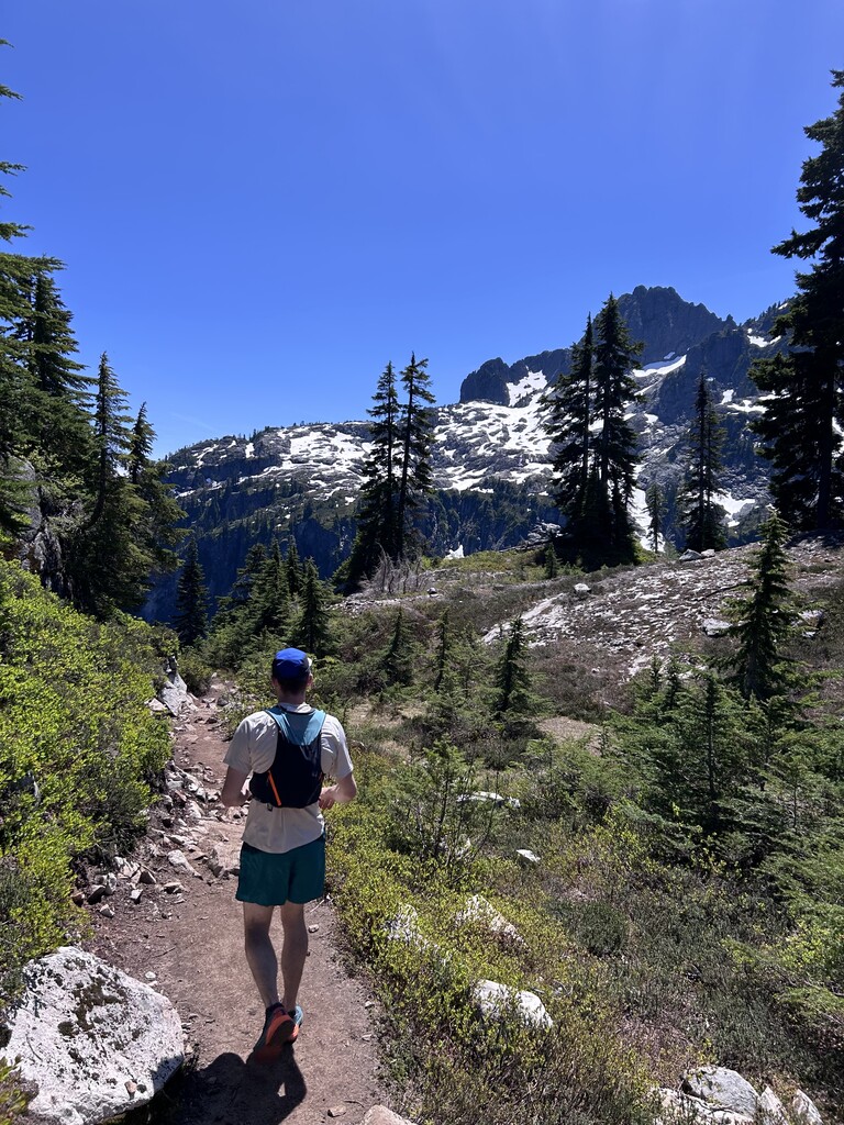 Great day for this route! Started with18ish miles of cruising on nice trails. For the off trail part we glissaded down a bit of snow to chair peak lake and more or less followed the route gpx track to get up to the ridge trail then more or less followed trails down to gem lake.